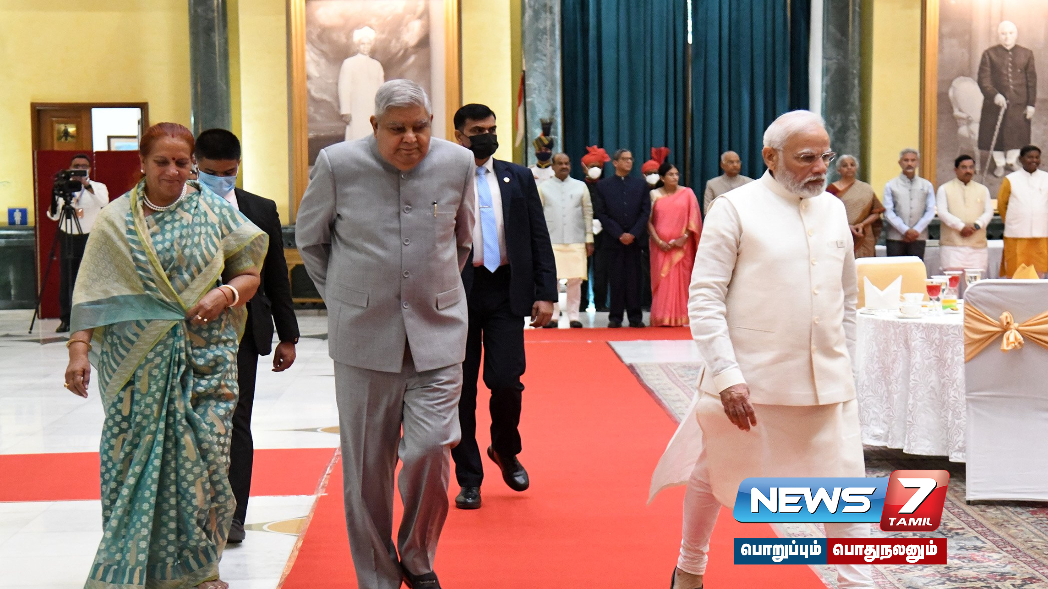 நாட்டின் 77ஆவது சுதந்திர தினத்தை முன்னிட்டு குடியரசு தலைவர் திரவுபதி முர்மு அளித்த தேநீர் விருந்தில் துணை ஜனாதிபதி ஜக்தீப் தன்கர் பிரதமர் மோடி உள்ளிட்டோர் பங்கேற்றனர்.