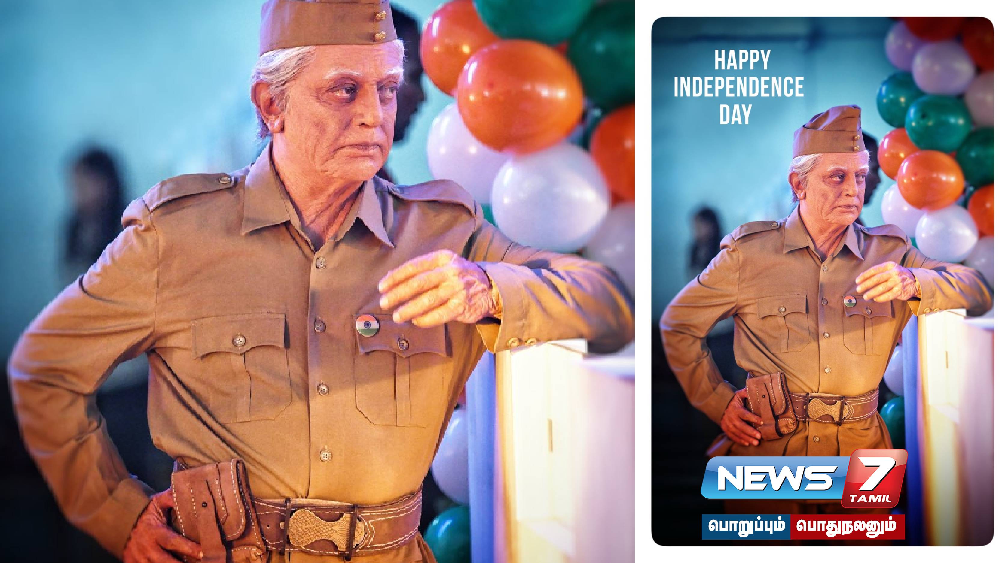 இந்நிலையில், சுதந்திர தினத்தை முன்னிட்டு இன்று இப்படத்தின் ‘சேனாதிபதி’ அதாவது இந்தியன் தாத்தா தோற்றத்தில் இருக்கும் கமல் புகைப்படத்தைப் படக்குழுவினர் வெளியிட்டுள்ளனர். இந்த புகைப்படத்துடன் சுதந்திர தின வாழ்த்தையும் படக்குழு தெரிவித்துள்ளது.