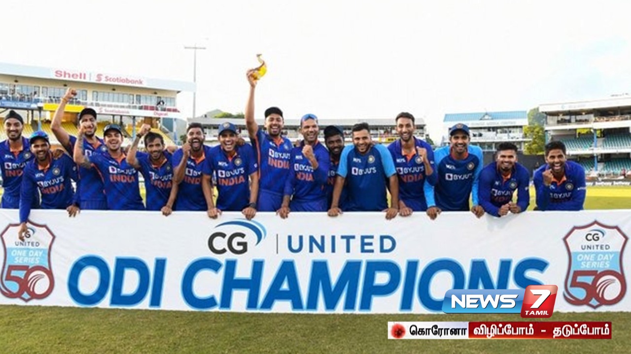 இந்திய-வெஸ்ட்இண்டீஸூக்கு இடையே நடந்த 3 ஒருநாள் போட்டியில் 3-0 என்ற கணக்கில் இந்தியா தொடரை வென்றது.