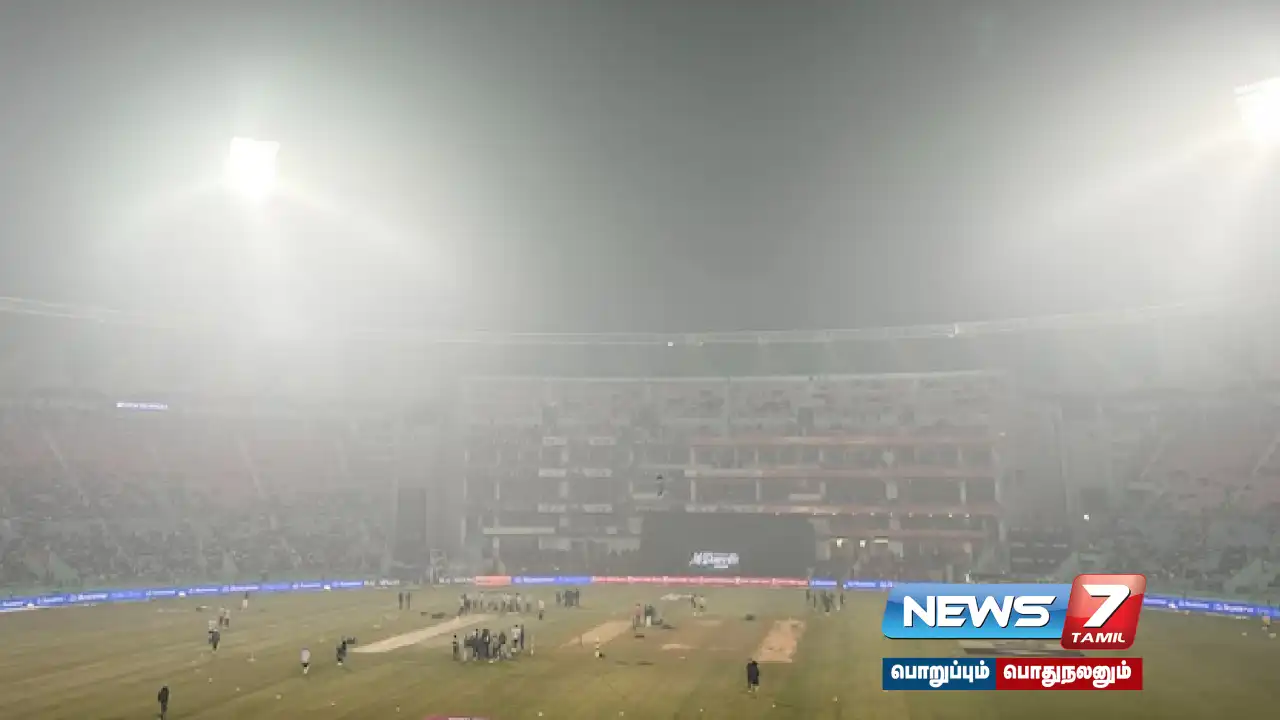 நடுவர்கள் மாலை 6 : 50, 7 : 30 மற்றும் 8 மணி என மூன்றுமுறை மைதானத்தின் நடுவில் இருந்து பார்வைத் திறனை ஆய்வை செய்தனர். ஆனால் நிலை விளையாடுவதற்கு ஏற்றதாக இல்லை. இதனை தொடர்ந்து அடுத்த ஆய்வு இரவு 8 : 30 மணிக்கு மேற்கொள்ளப்படும் என்று தெரிவிக்கப்பட்டுள்ளது.