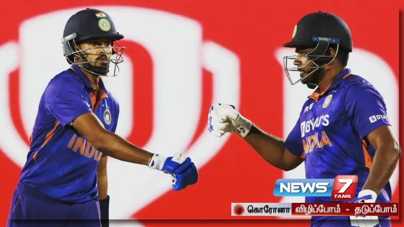 184 ரன்கள் இலக்கை 2 வது ஆக களமிறங்கிய இந்திய அணியின் தொடக்க ஆட்டக்காரர்களான கேப்டன் ரோகித் மற்றும் இஷான் கிஷான் பெரிதும் ஜொலிக்கமால் வெறியேற, தொடர்ந்து வந்த ஸ்ரேயஸ் அய்யரும், சஞ்சு சாம்சனும், அணியின் ஸ்கோரை சீரான வேகத்தில் உயர்த்தினர்.