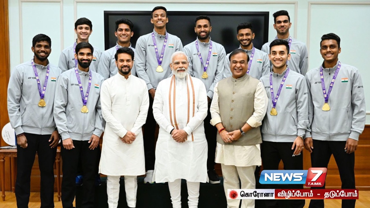 தாய்லாந்தில் மே 8ம் தேதி முதல் மே 15ம் தேதி வரை நடைபெற்ற தாமஸ் கோப்பை மற்றும் உபேர் கோப்பை பேட்மிண்டன் போட்டியில் முதல் முறையாக கோப்பை வென்ற இந்திய அணியை பிரதமர் மோடி நேரில் சந்தித்தார்.