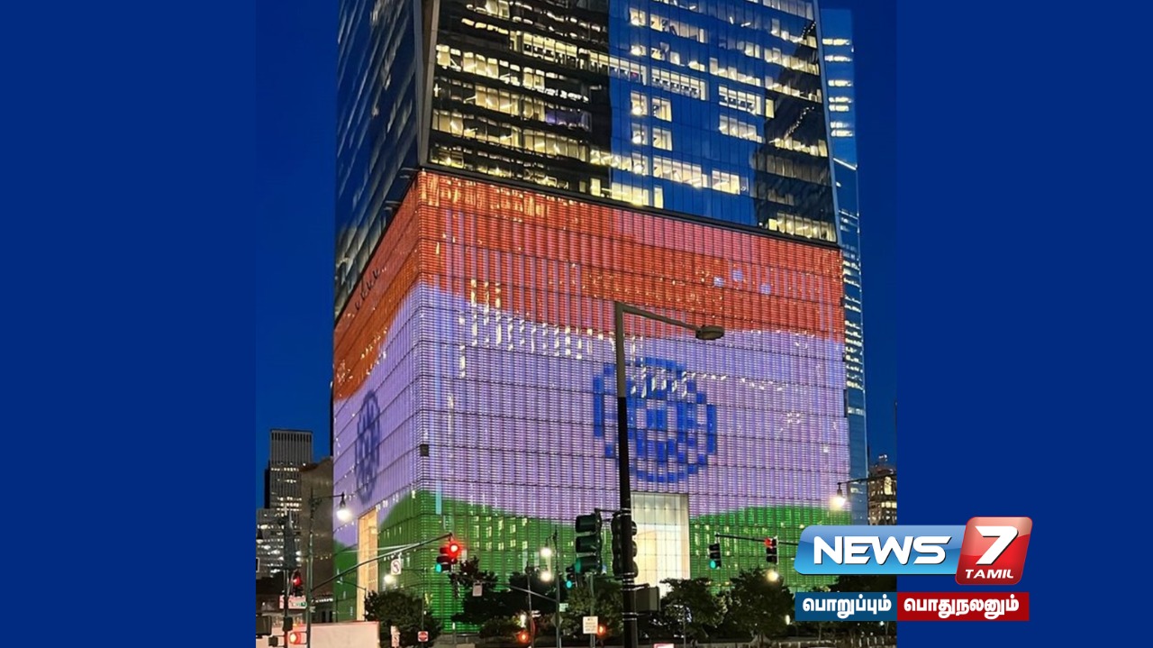 அமெரிக்காவில் உள்ள உலக வர்த்தக மையத்தில் இந்தியாவின் சுதந்திர தினத்தை முன்னிட்டு டிஜிட்டல் முறையில் இந்திய தேசிய கொடி காட்சிப்படுத்தப்பட்டது.
