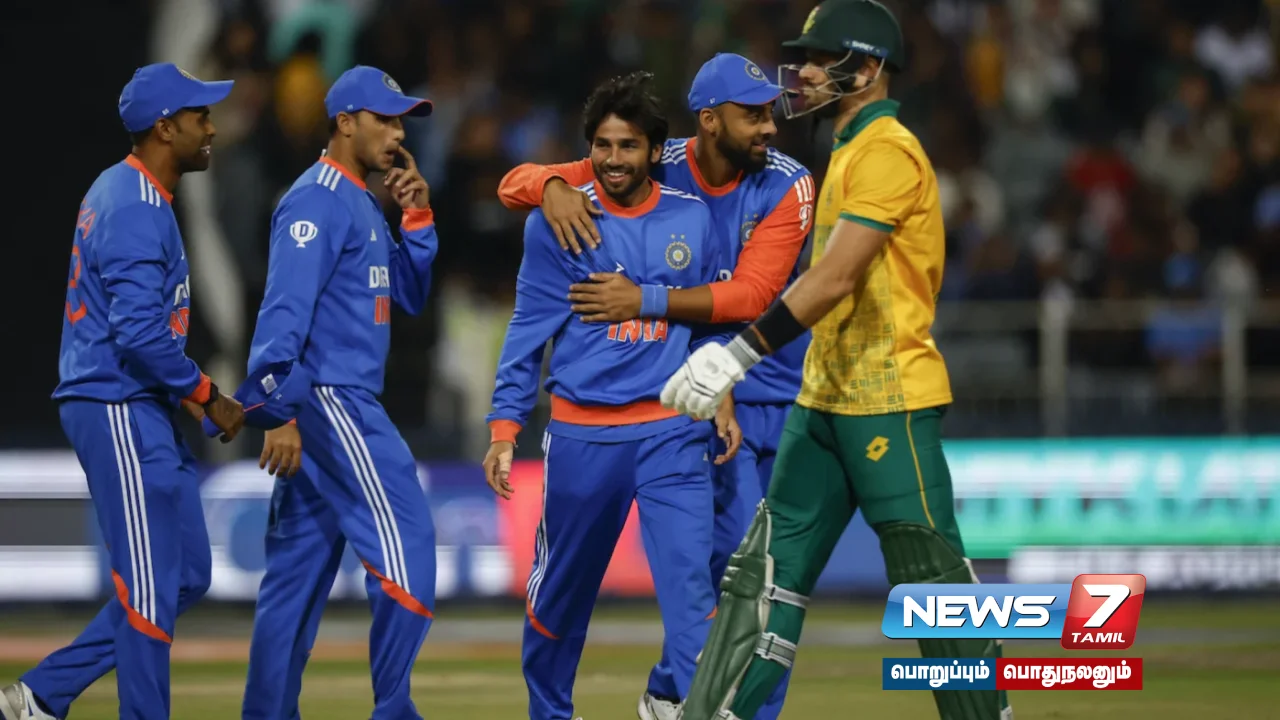 தென் ஆப்பிரிக்காவில் சுற்றுப்பயணம் மேற்கொண்டுள்ள சூர்யகுமார் யாதவ் தலைமையிலான இந்திய கிரிக்கெட் அணி 4 போட்டிகள் கொண்ட டி20 தொடரில் விளையாடி வருகிறது. இதில் முதலாவது மற்றும் 3வது போட்டியில் இந்திய அணியும், 2வது போட்டியில் தென்ஆப்பிரிக்க அணியும் வெற்றி பெற்றன. இதன்மூலம், தொடரில் 2-1 என்ற கணக்கில் இந்தியா முன்னிலை வகித்தது. இந்த நிலையில் இவ்விரு அணிகளுக்கு இடையிலான 4வது மற்றும் கடைசி டி20 போட்டி ஜோகன்னஸ்பர்க்கில் உள்ள வான்ரர்ஸ் ஸ்டேடியத்தில் நேற்று (நவ.15) நடைபெற்றது.