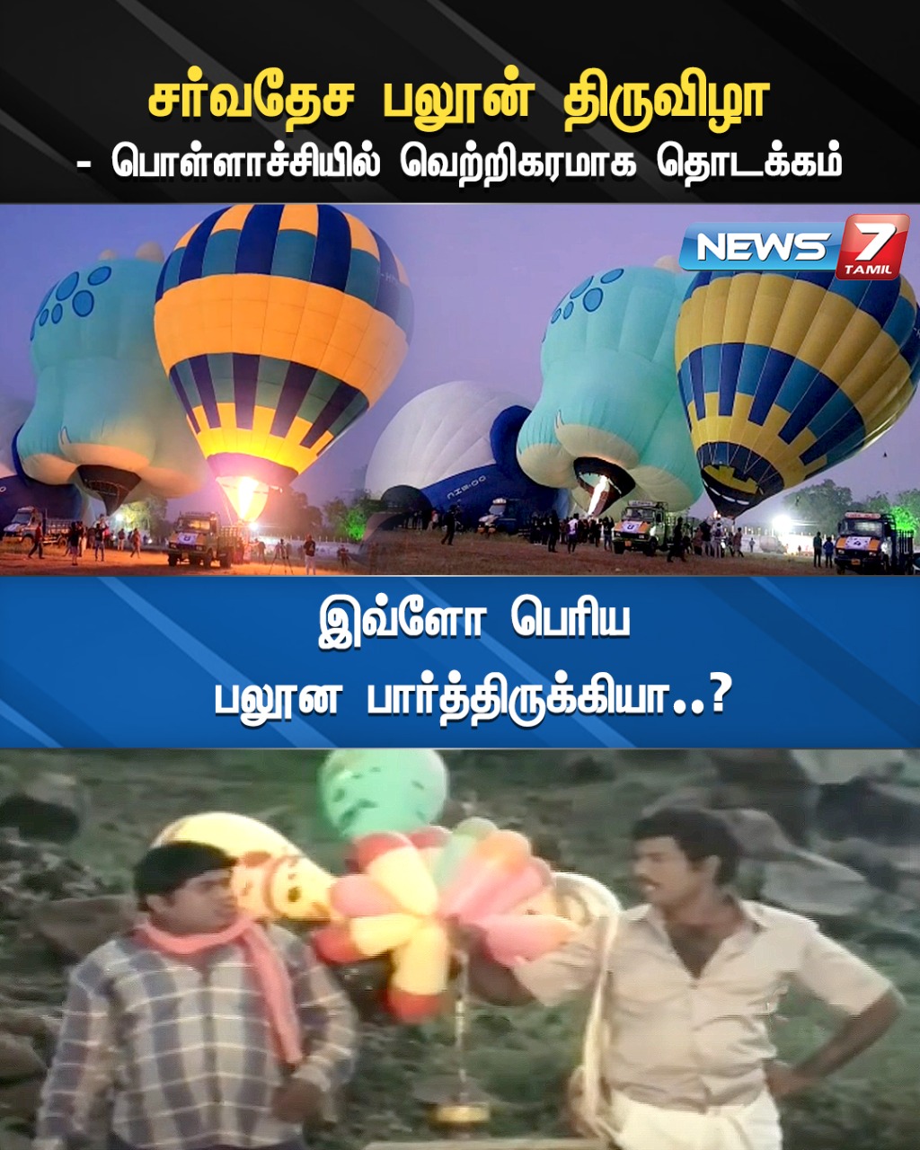 அதனடிப்படையில் பொள்ளாச்சி அருகே உள்ள ஆச்சிப்பட்டியில் சர்வதேச பலூன் திருவிழா நேற்று தொடங்கியுள்ளது. 3 நாட்கள் நடைபெறும் இந்த பலூன் திருவிழாவில் வெப்ப காற்று பலூனில் பறக்க ஒரு நபருக்கு தலா ரூ.25,000 கட்டணம் செலுத்த வேண்டும். பிரான்ஸ், ஜெர்மனி, நெதர்லாந்து உள்பட 8 நாடுகளில் இருந்து வரவழைக்கப்பட்ட 12 பலூன்கள் பறக்கவிடப்பட்டன.