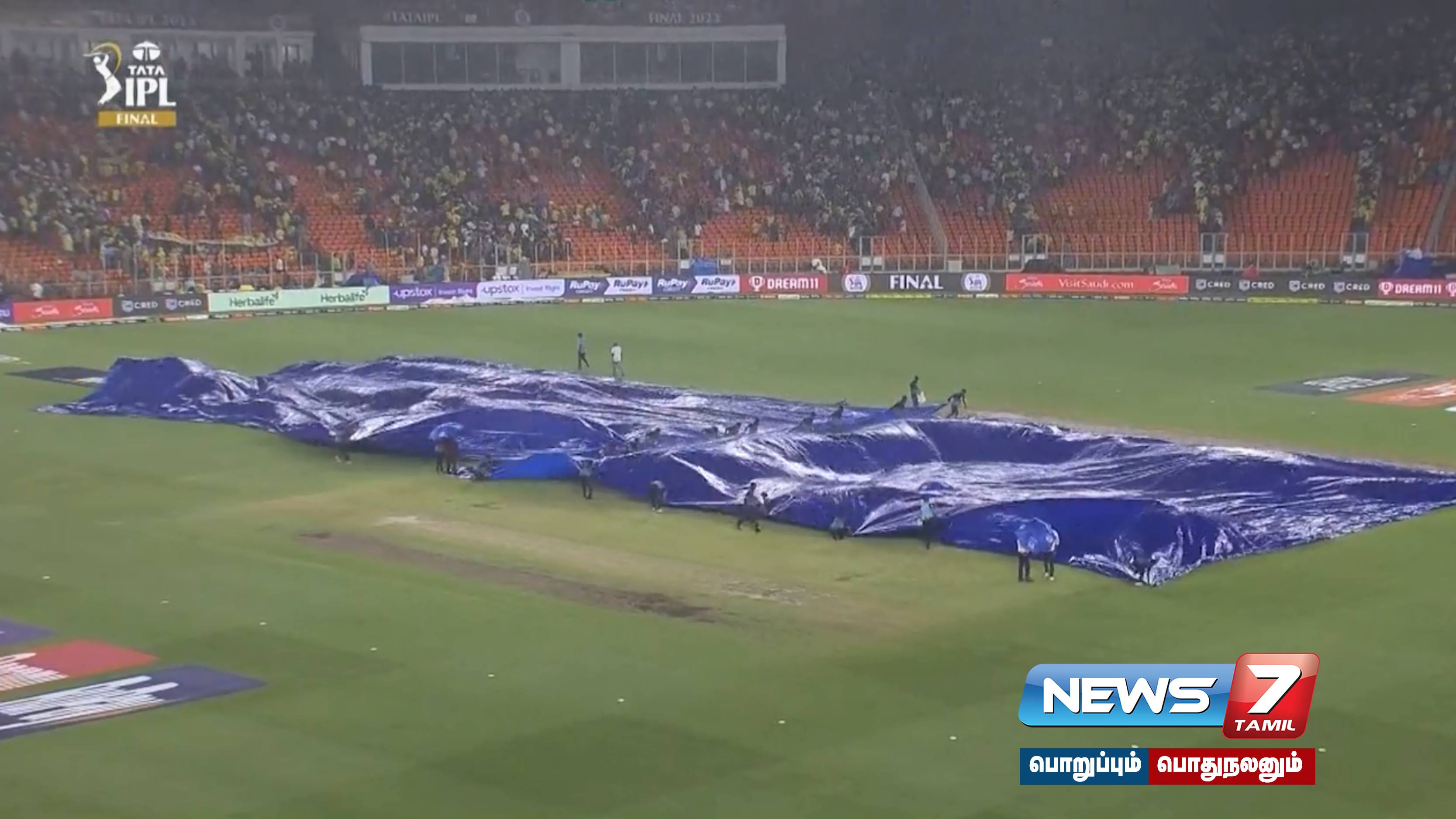 ஐபிஎல் ரசிகர்கள் ஆவலுடன் எதிர்பார்த்த இறுதிப்போட்டி அகமதாபாத் நரேந்திர மோடி மைதானத்தில் நடைபெறும் என்று அறிவிக்கப்பட்டிருந்தது. அதன்படி இறுதிப்போட்டி நேற்று நடைபெற இருந்த நிலையில், இரவு 11 மணி வரை மழை பெய்ததால், இன்றைக்கு ஆட்டம் ஒத்திவைக்கப்பட்டது.