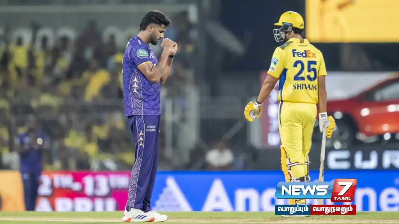 ஐபிஎல் தொடரின் 18வது சீசன் இந்தியாவின் பல்வேறு நகரங்களில் விறுவிறுப்பாக நடைபெற்று வருகிறது. அதன்படி, சென்னை சேப்பாக்கம் மைதானத்தில் நேற்று (ஏப்.11) நடைபெற்ற ஆட்டத்தில் சென்னை – கொல்கத்தா அணிகள் மோதின. இந்த ஆட்டத்தில் டாஸ் வென்ற கொல்கத்தா அணி பந்துவீச்சை தேர்வு செய்தது. அதன்படி, முதலில் பேட்டிங் செய்ய களமிறங்கிய சென்னை அணி அடுத்தடுத்து விக்கெட்டுகளை இழந்து தடுமாறியது. சென்னை அணியின் தொடக்க ஆட்டக்காரர்களான கான்வே 12 ரன்களிலும், ரச்சின் ரவீந்திரா 4 ரன்களிலும் வெளியேறினர்.