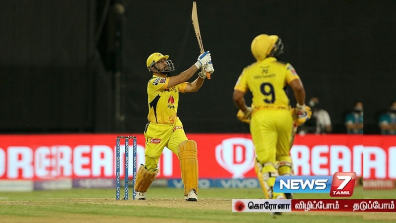 135 ரன்கள் அடித்தால் வெற்றி என்ற இலக்குடன் களமிறங்கிய சிஎஸ்கே அணியின் தொடக்க வீரர்கள் ருதுராஜ், டு பிளிஸ்சிஸ் ஜோடி சிறப்பான ஆட்டத்தை வெளிப்படுத்தினர். ருதுராஜ் 46 ரன்களும், டு பிளிஸ்சிஸ் 41 ரன்களும் எடுத்து ஆட்டமிழந்தனர். இதனையடுத்து சென்னை அணி 2 பந்துகள் மீதம் இருக்க அணிக்கு 2 ரன்கள் தேவைப்பட்ட நிலையில் யாரும் எதிர்பாராத நிலையில் தனது ஸ்டைலில் சிக்ஸ்ர் விளாசி Match Finisher என்ற மீண்டும் தனது பழைய பட்டத்தை புதுப்பித்து கொண்டார் கேப்டன் தோனி. அத்துடன் ஐபிஎல் போட்டிகளில் தோனி அடித்த 100வது சிக்ஸ் இது என்பதும் குறிப்பிடத்தக்கது.