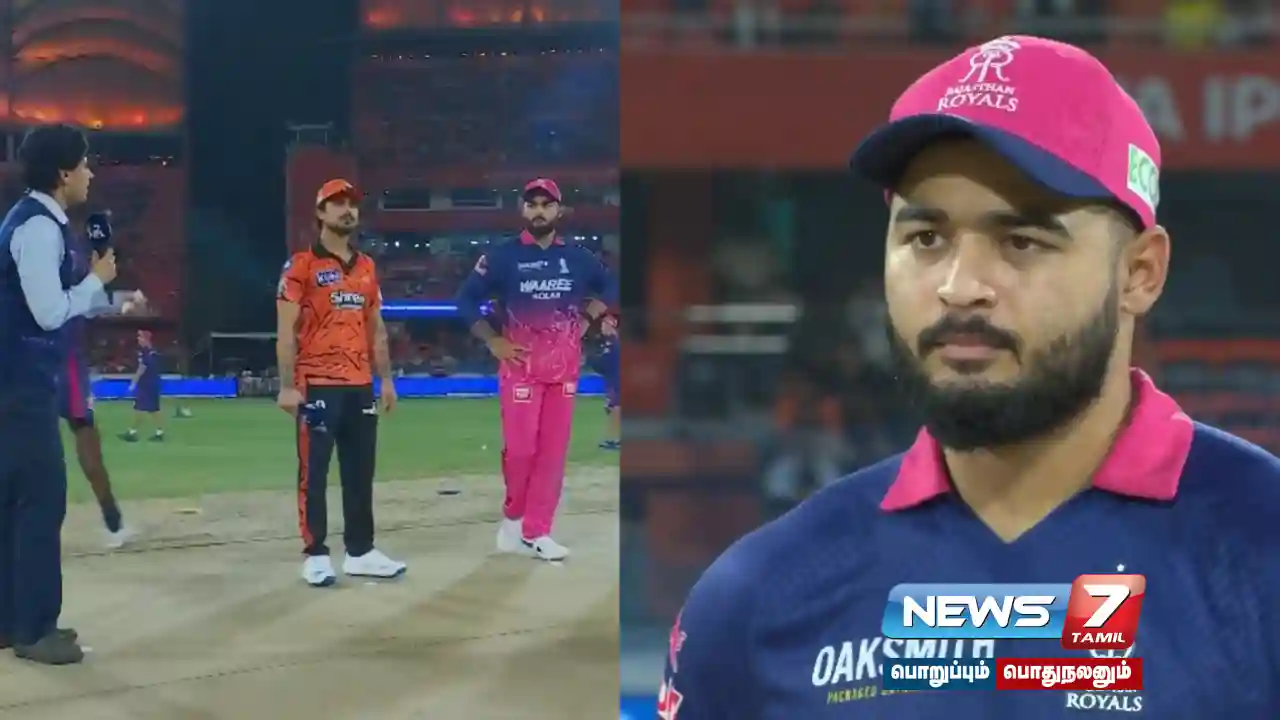 இந்த நிலையில் இப்போட்டிக்கான டாஸ் போடப்பட்டுள்ளது. இதில் டாஸ் வென்ற ராஜஸ்தான் அணி கேப்டன் ரியான் பராக் பந்து வீச்சை தேர்வு செய்துள்ளார். இதனை தொடர்ந்து ஐதராபாத் அணி முதலில் பேட்டிங் செய்ய உள்ளது.