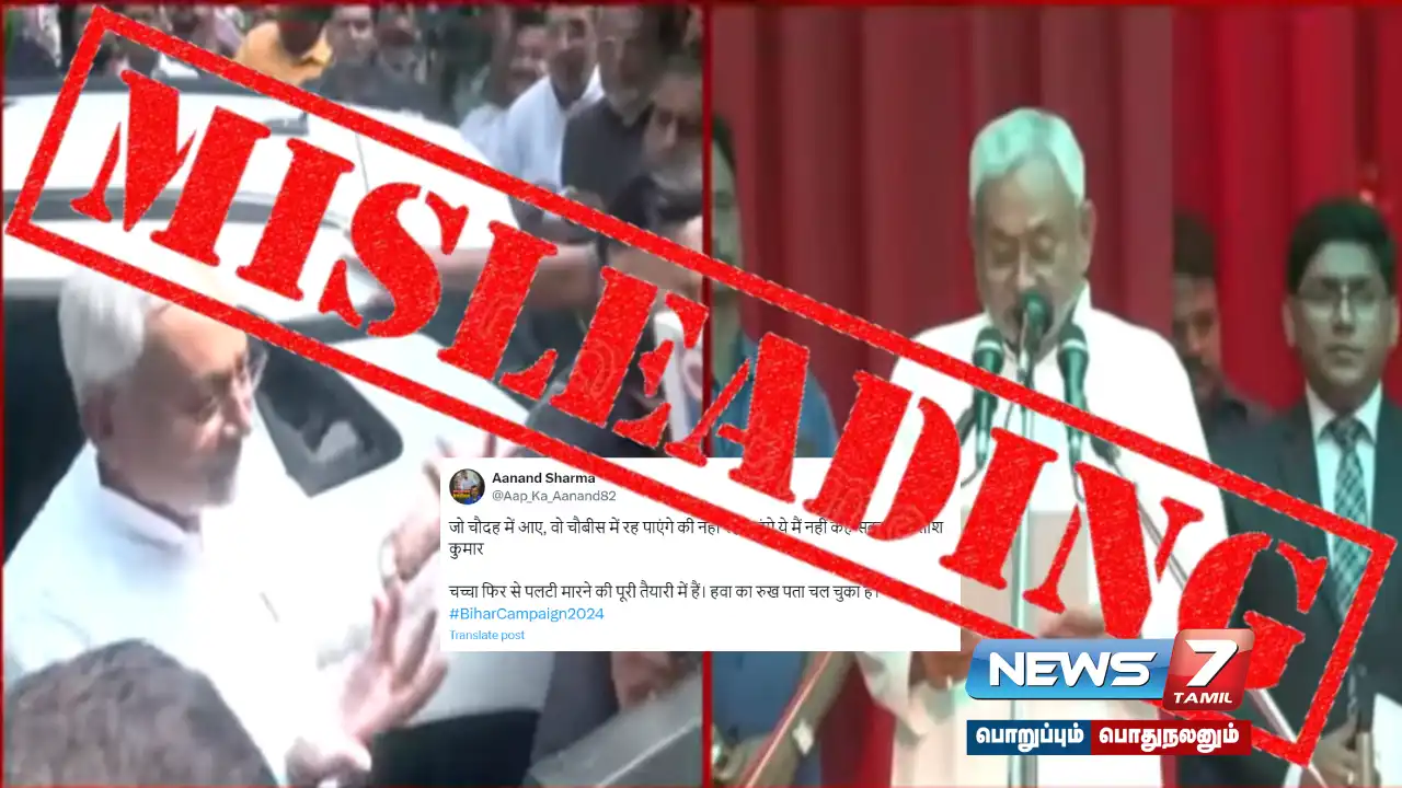 வைரலான வீடியோ ஆகஸ்ட் 2022-ம் ஆண்டு நிதிஷ்குமார் பாஜகவில் இருந்து விலகி ஆர்ஜேடியில் இணைந்தபோது எடுக்கப்பட்டது எனவும், வீடியோவுடன் கூறப்பட்ட கூற்று தவறாக வழிநடத்துவதாகவும் கண்டறியப்பட்டது.