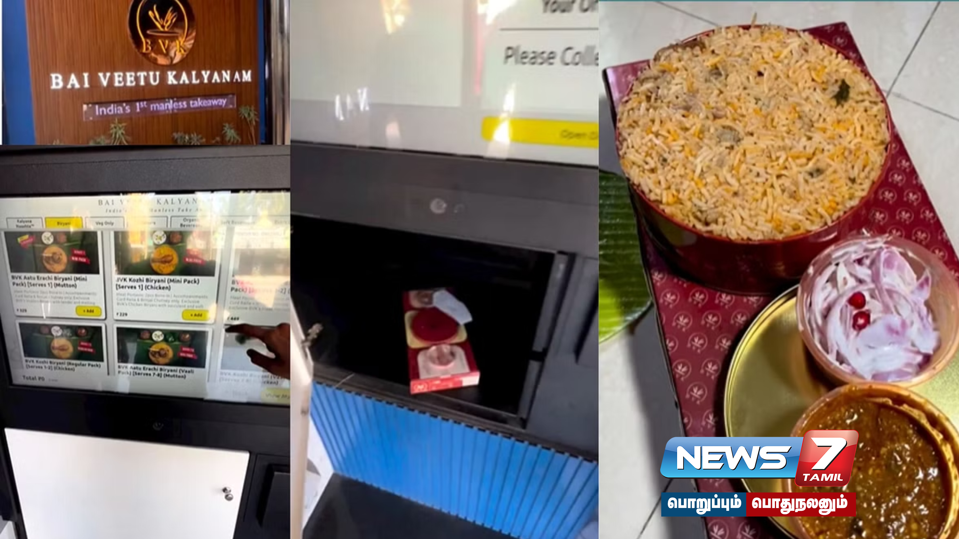 பணம் எடுக்க மட்டுமே அறிமுகம் செய்யப்பட்ட ஏடிஎம், தற்போது பல பரிமாணங்களை அடைந்து மக்கள் மத்தியில் வரவேற்பை பெற்று வருகிறது என்றால், அதன் சேவையில் எந்த தடையும் இல்லாமல் சிறப்பாக செயல்பட்டு வருவதும் ஒரு காரணம். அந்த வகையில் பண பரிவர்த்தனையையும் தாண்டி, ஏடிஎம் மூலமாக பிரியாணி ஆர்டர்களையும் சிறப்பாக வழங்க முடியும் என்று, இந்தியாவிலேயே முதன் முறையாக, அதுவும் சென்னை கொளத்தூரில் இயங்கி வரும் பாய் வீட்டு கல்யாணம் பிரியாணி கடை வெளிநாடுகளில் இருப்பது போன்ற ஆட்டோமேட்டிக் தானியங்கி பிரியாணி கடையை திறந்து அசத்தியுள்ளது.