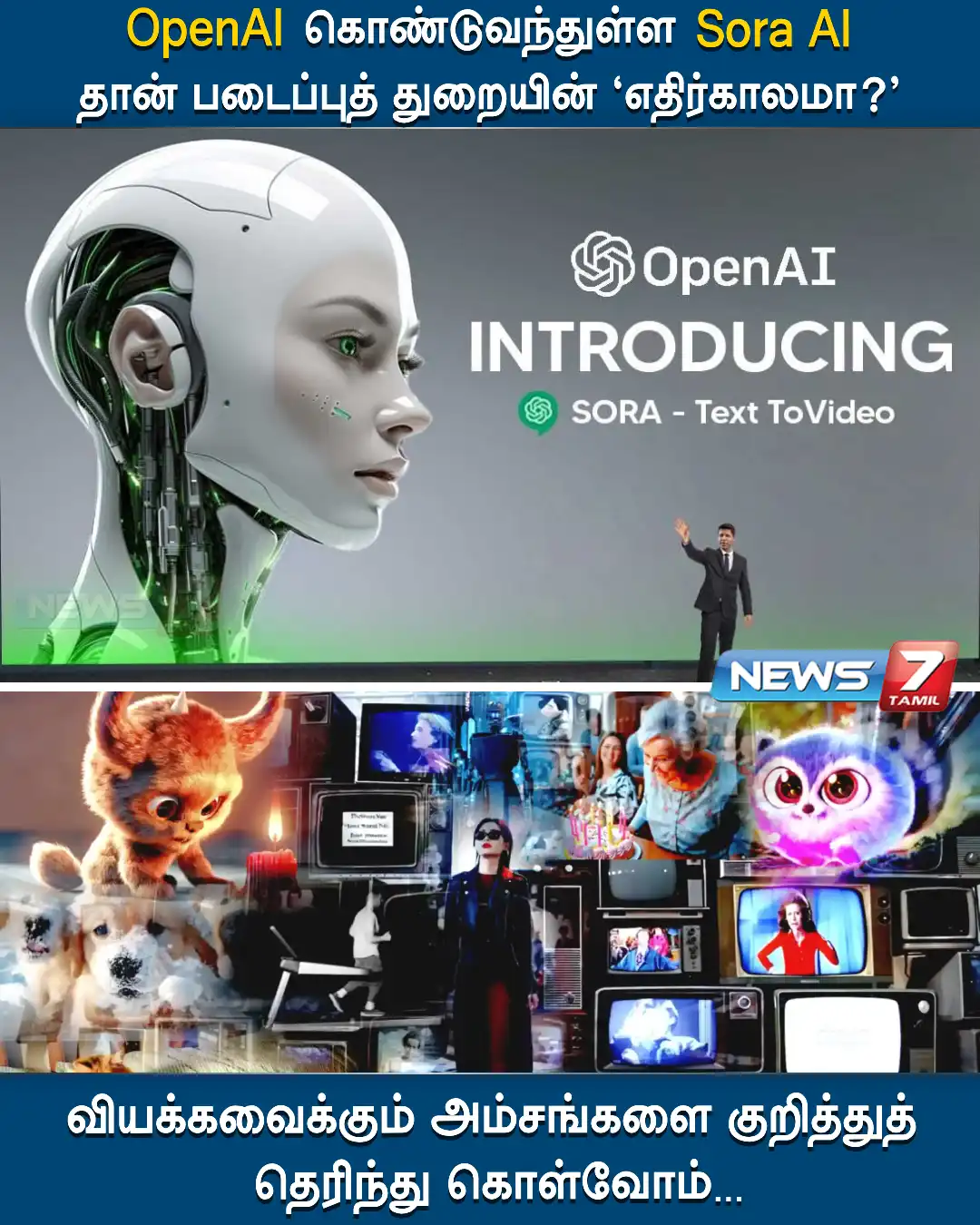 ChatGPAT AI கருவியை உருவாக்கும் OpenAI நிறுவனம் சமீபத்தில் மற்றொரு அற்புதமான தொழில்நுட்பத்தை அறிமுகப்படுத்தியுள்ளது. இதற்கு ‘சோரா’ என அந்நிறுவனம் பெயரிட்டுள்ளது. இந்த AI இன் சிறப்பு என்னவென்றால், இது எந்த டெக்ஸ்ட் கட்டளை அல்லது ஸ்கிரிப்டையும் படித்து அதை வீடியோவாக மாற்றுகிறது.