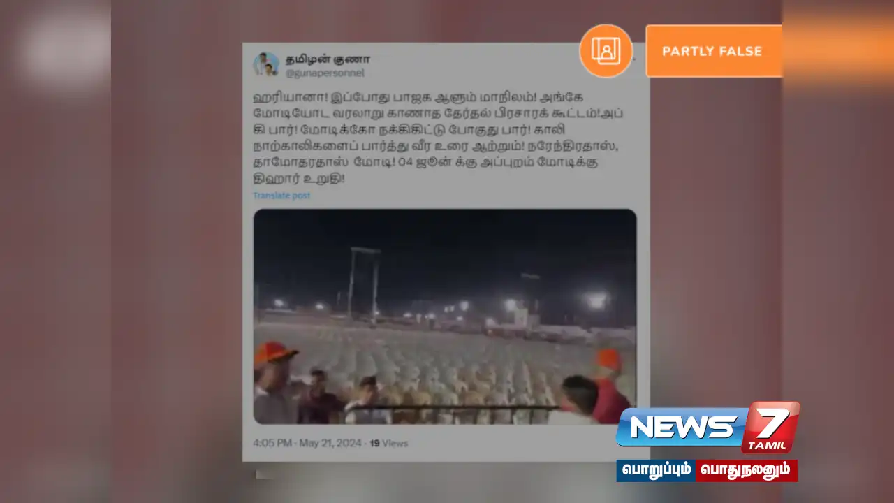 பிரதமர் மோடி கடந்த மே 18-ம் தேதி ஹரியானா மாநிலம் அம்பலாவில் நடந்த பொதுகூட்டம் ஒன்றில் கலந்துகொண்டு பேசினார். இக்கூட்டத்தில் பிரதமர் மோடி காலி இருக்கைகளுடன் பேசிக்கொண்டிருந்ததாக வீடியோ ஒன்று சமூக வலைத்தளங்களில் பரவி வருகின்றது.