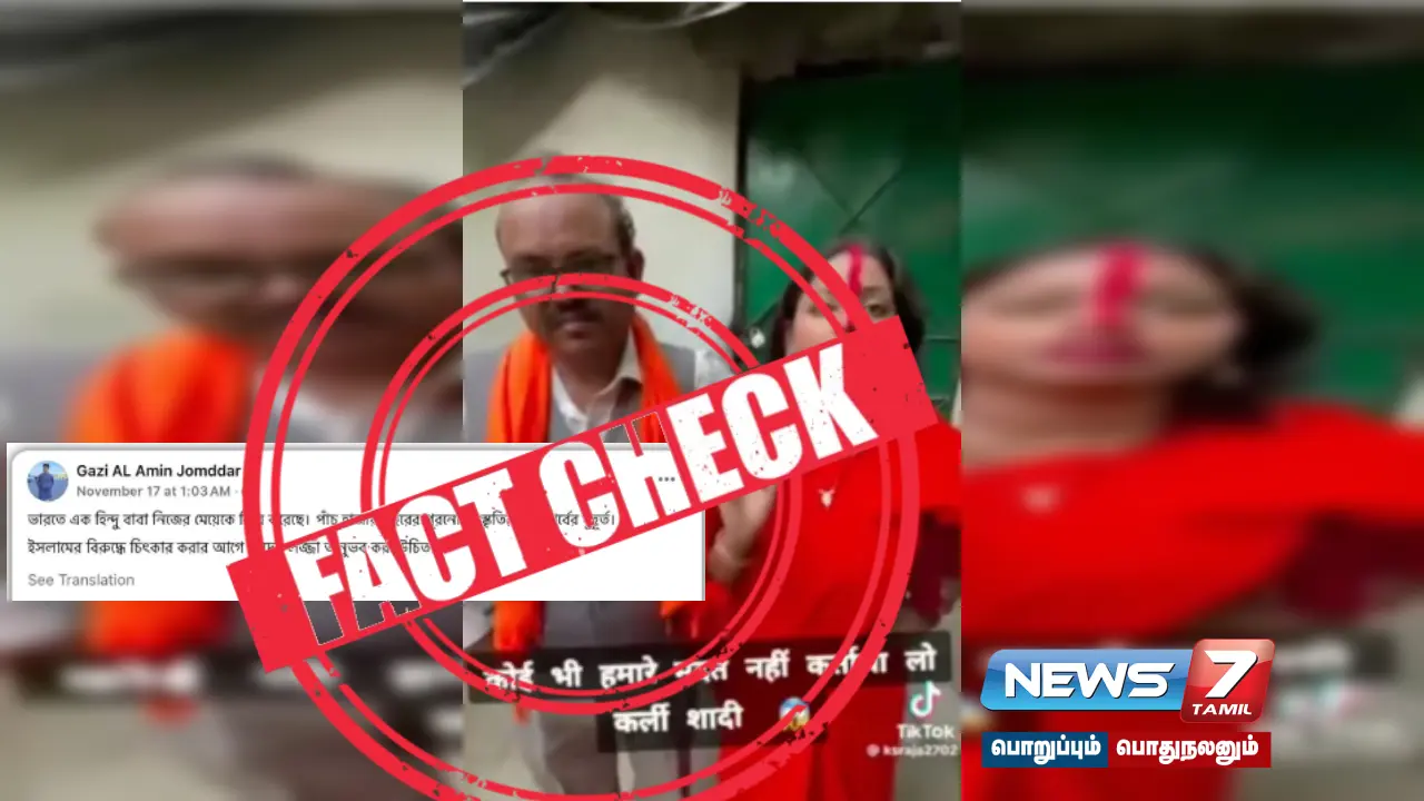 இந்தியாவில் லவ் ஜிஹாத்தில் இருந்து பாதுகாக்க ஒரு நபர் தனது மகளை திருமணம் செய்து கொண்டதாக சமூக ஊடகங்களில் வீடியோ ஒன்று பகிரப்பட்டு வருகிறது. இதுகுறித்த உண்மை சரிபார்ப்பை காணலாம்.