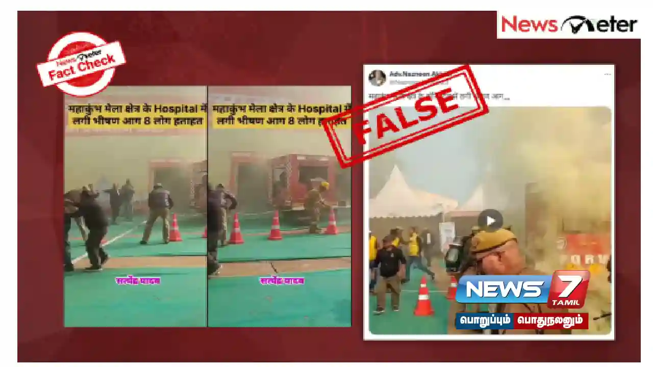 பெருந்திரளான பக்தர்களின் வருகையை நிர்வகிப்பதற்கு உள்கட்டமைப்பு, பாதுகாப்பு மற்றும் சுகாதார வசதிகள் ஆகியவற்றில் கவனம் செலுத்தி, நிகழ்ச்சி சீராக நடைபெறுவதை உறுதிசெய்ய விரிவான ஏற்பாடுகள் செய்யப்பட்டுள்ளன. இந்த சூழலில், சமூக ஊடகங்களில் குழப்பமான காட்சிகளைக் காட்டும் வீடியோ ஒன்று பரவி வருகிறது, மகா கும்பமேளா பகுதியில் உள்ள மருத்துவமனையில் தீ விபத்து ஏற்பட்டதாக வீடியோவைப் பகிர்ந்துள்ளனர். இந்த பதிவில் ”கும்பமேளா பகுதியில் அமைந்துள்ள மருத்துவமனையில் பெரிய தீ விபத்து ஏற்பட்டது” என்று எழுதினார். பல X பயனர்கள் அதையே தங்களது தளங்களில் பகிர்ந்துள்ளனர்.