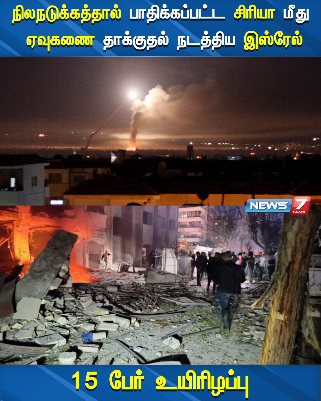 நிலநடுக்கத்தால் பாதிக்கப்பட்ட சிரியாவில், உயர்மட்ட பாதுகாப்பு போடப்பட்டிருந்த டமாஸ்கஸ் குடியிருப்பு பகுதியில் இஸ்ரேல் ராணுவம் நடத்திய வான்வழித் தாக்குதலில் ராணுவ வீரர் ஒருவர் உட்பட 15 பேர் உயிரிழந்துள்ளனர்.