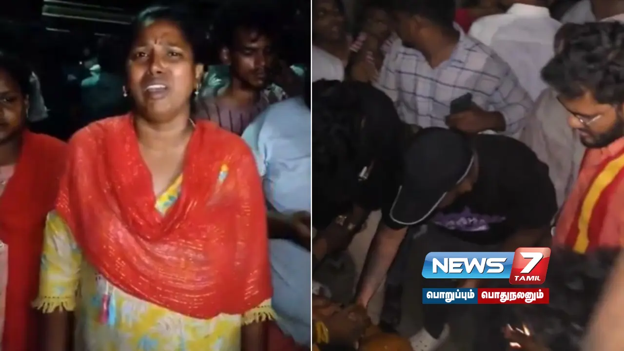 சென்னை, வியாசர்பாடி, முல்லை நகர்ப் பகுதியில் மே 26) அன்று தீவிபத்து ஏற்பட்டது. இந்த விபத்தில் 15 குடிசைகள் எரிந்து நாசமாயின. இதற்கிடையில் தீவிபத்தில் பாதிக்கப்பட்டவர்களை பார்வையிட்டு, அவர்களுக்கு அத்தியாவசியப் பொருட்களும், உணவும் வழங்க தவெக நிர்வாகிகள் அப்பகுதிக்கு சென்றதாக கூறப்படுகிறது.