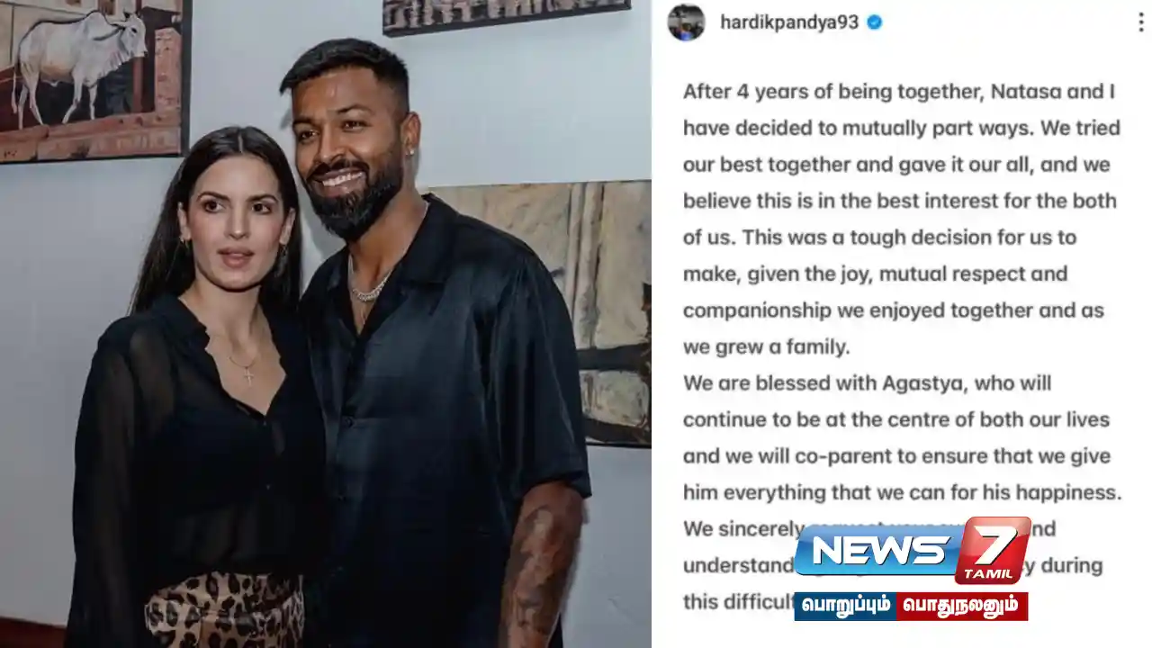 கடந்த மே மாதம் முதல் இணையத்தில் ஹர்திக் பாண்டியா – நடாஷா தம்பதிகளுக்கு இடையே விவாகரத்து நடைபெற்றுள்ளதாக வதந்திகள் பரவி வந்தது. இந்த நிலையில் தற்போது அதற்கு முற்றிப்புள்ளி வைக்கும் விதாமக தாங்கள் பிரிவதாக இருவரும் அதிகாரபூர்வமாக அறிவிப்புகளை வெளியிட்டுள்ளனர்.