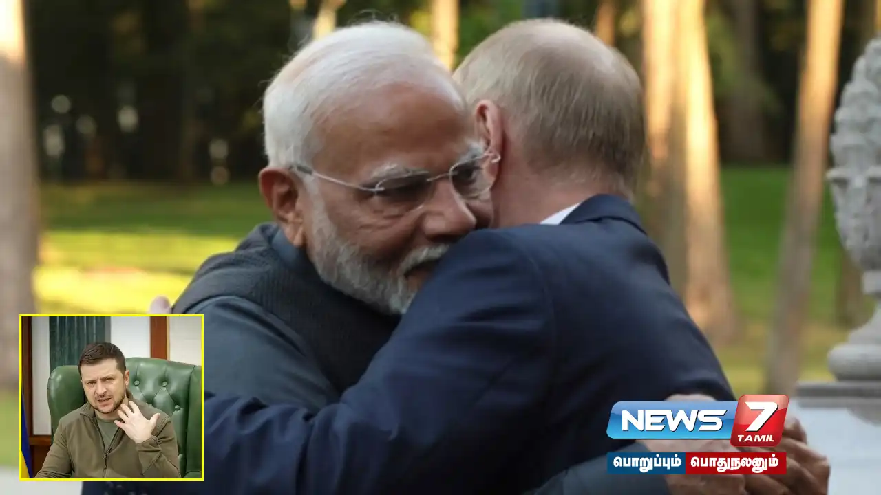 இந்நிலையில், உலகின் மிகப்பெரிய ஜனநாயக நாட்டின் தலைவர், உலகில் கொடுங்கோன்மை செயல்களை செய்யும் குற்றவாளியை மாஸ்கோவில் கட்டி அணைப்பதை பார்க்கும் போது அமைதி முயற்சிகளுக்கு பெரும் ஏமாற்றம் தருவதாக அமைந்துள்ளது” என ஜெலன்ஸ்கி பதிவிட்டுள்ளார்.