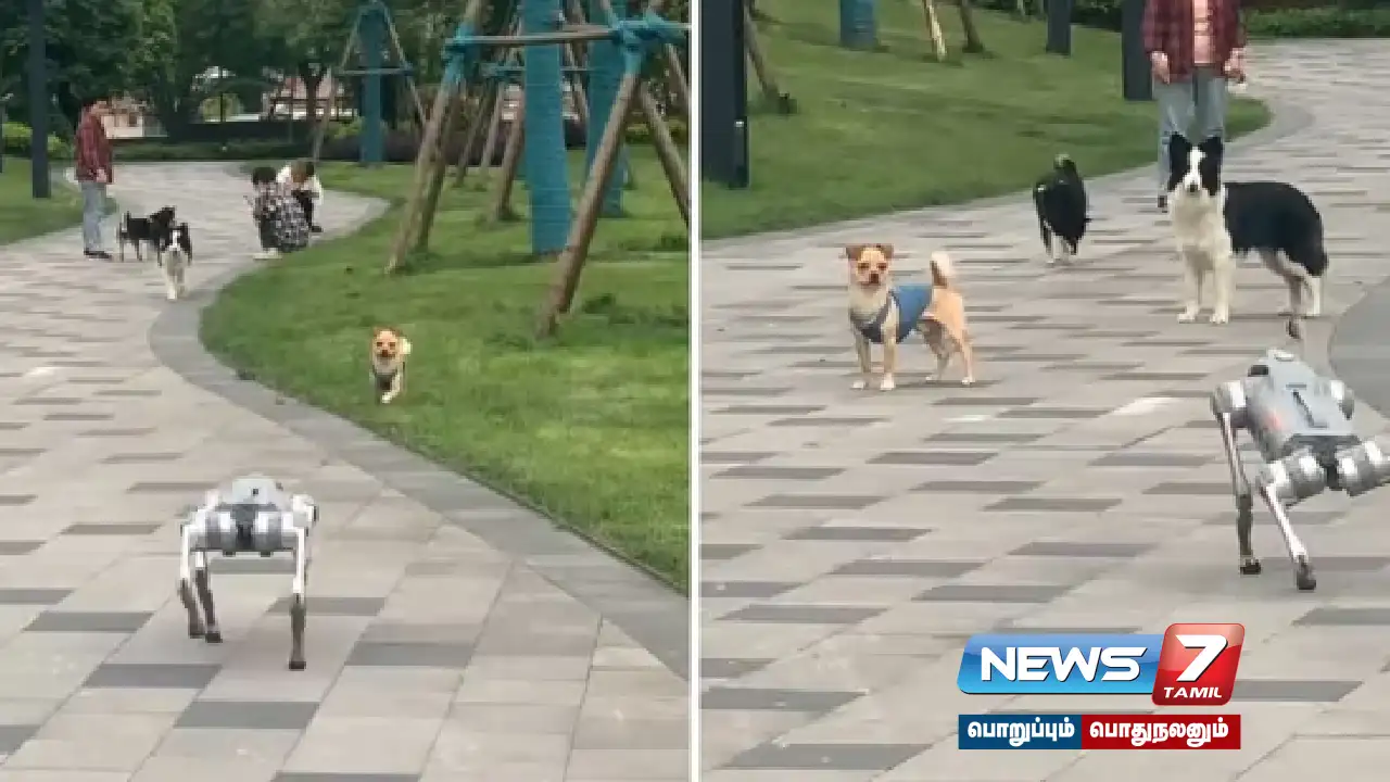 இந்நிலையில் நாய் போன்ற அமைப்புடைய ரோபோ ஒன்று பொதுவெளியில் நடந்து செல்லும் போது, அதனை கண்டு உயிருள்ள நாய்கள் அச்சப்படும் வகையில் வீடியோ ஒன்று இணையத்தில் வைரலாகி வருகிறது. அந்த வீடியோவில், பூங்காவில் ரோபோ நாய் ஒன்று, சில மீட்டர் தூரத்தில் நின்று உயிருள்ள உண்மையான நாய்க்குட்டிகளை பார்க்கிறது. பின்னர் உயிருள்ள நாய்க்குட்டிகளை நெருங்கி செல்கிறது. வித்தியாசமான தோற்றத்தில் இருக்கும் ரோபோ அவற்றை நெருங்கும்போது, அவை பயத்தில் தலைதெறித்து ஓடுகின்றன. தூரத்தில் நின்று ரோபோவை வெறித்து பார்க்கின்றன.
