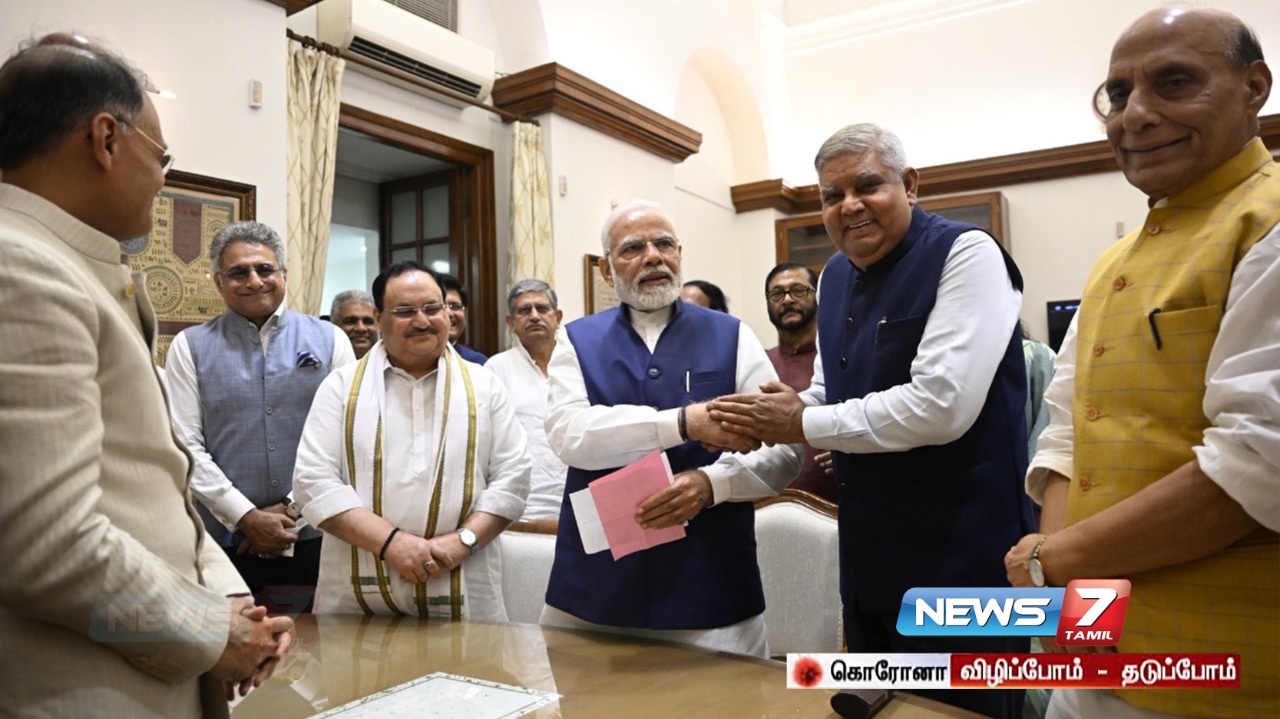 நாளையுடன் வேட்புமனு தாக்கல் நிறைவடைய உள்ள நிலையில், ஜக்தீப் தன்கர் இன்று தனது வேட்புமனுவை தாக்கல் செய்தார்.