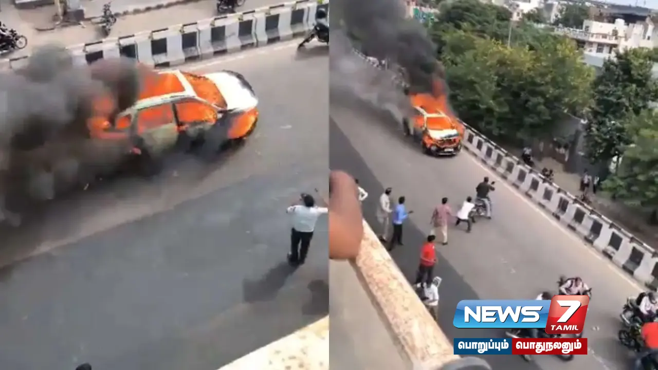 தீப்பிடித்த கார் சென்றபோது அந்த சாலையில் குறைந்த அளவிலேயே வாகனங்கள் சென்றதால் பெரும் அசம்பாவிதம் தவிர்க்கப்பட்டது. இந்த விபத்து தொடர்பான வீடியோ இணையத்தில் வைரலாகி வருகிறது. மின்கசிவு காரணமாக கார் தீப்பற்றியிருக்கலாம் என முதற்கட்ட விசாரணையில் தெரியவந்துள்ளது.