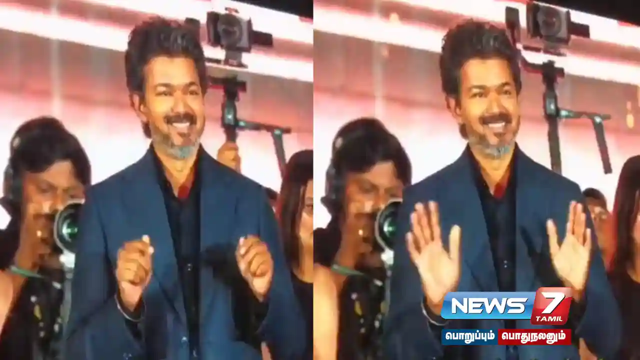 இதனிடையே ரசிகர் கூட்டத்தில் ஒரு பகுதியினர் டிவிகே… டிவிகே… என விஜயின் கட்சி பெயரை சொல்லி ஆர்ப்பரித்தனர். அப்போது விஜய் ’’இங்கே வேண்டாம்’’ என்பது போல் சைகை செய்தார். இது தொடர்பான காணொலிகள் தற்போது இணையத்தில் வைரலாகி வருகிறது.