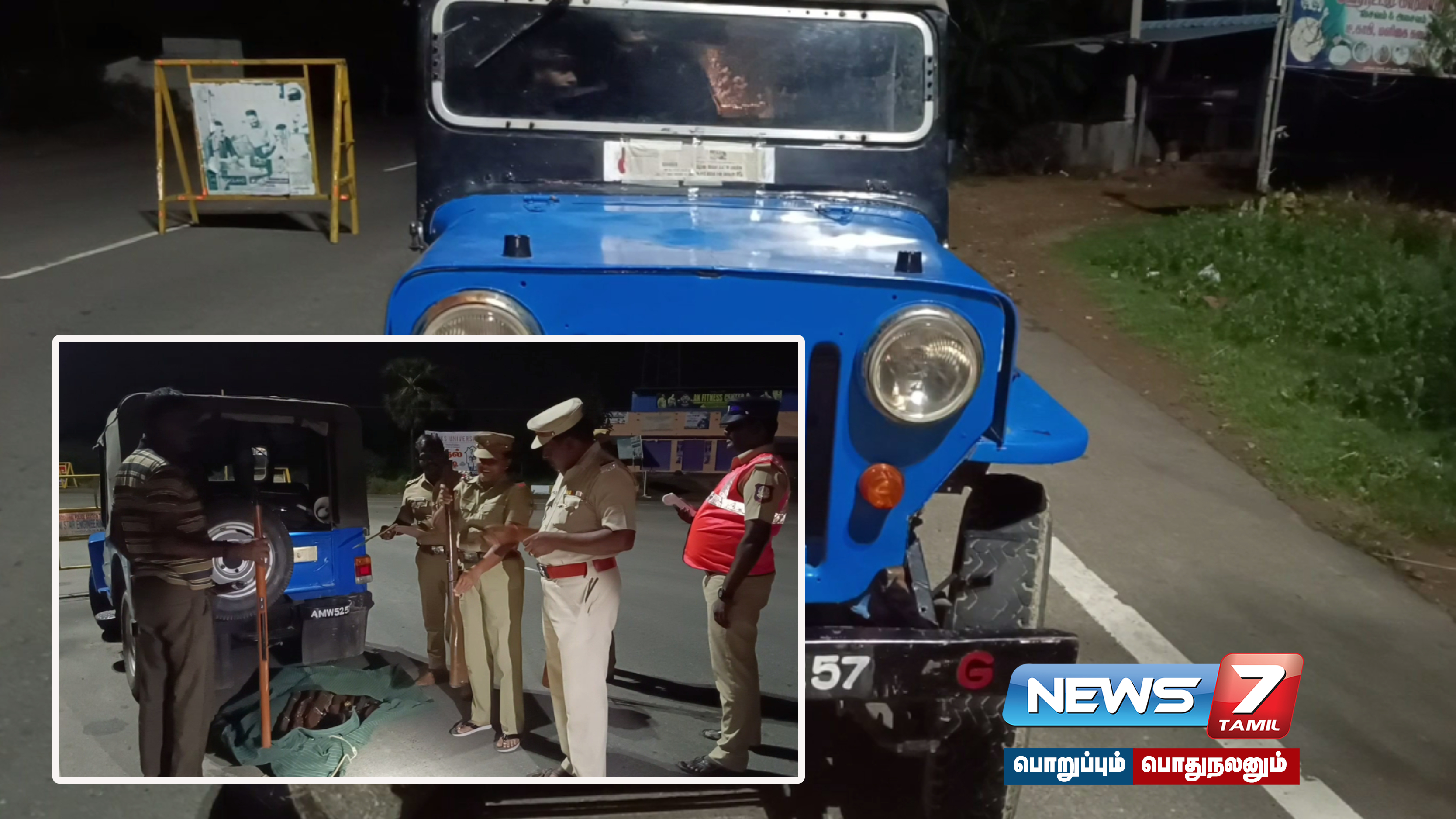 திண்டிவனத்தில் போலீசாரின் ‘ஸ்டாமிங் ஆபரேஷன்’ சோதனையின் போது ரஜினி படத்திற்கு 25 துப்பாக்கி மற்றும் துப்பாக்கியில் பயன்படுத்தப்படும் கத்தி மற்றும் அரசு முத்திரையுடன் வந்த ஜீப்பை மடக்கி பிடித்தனர்.