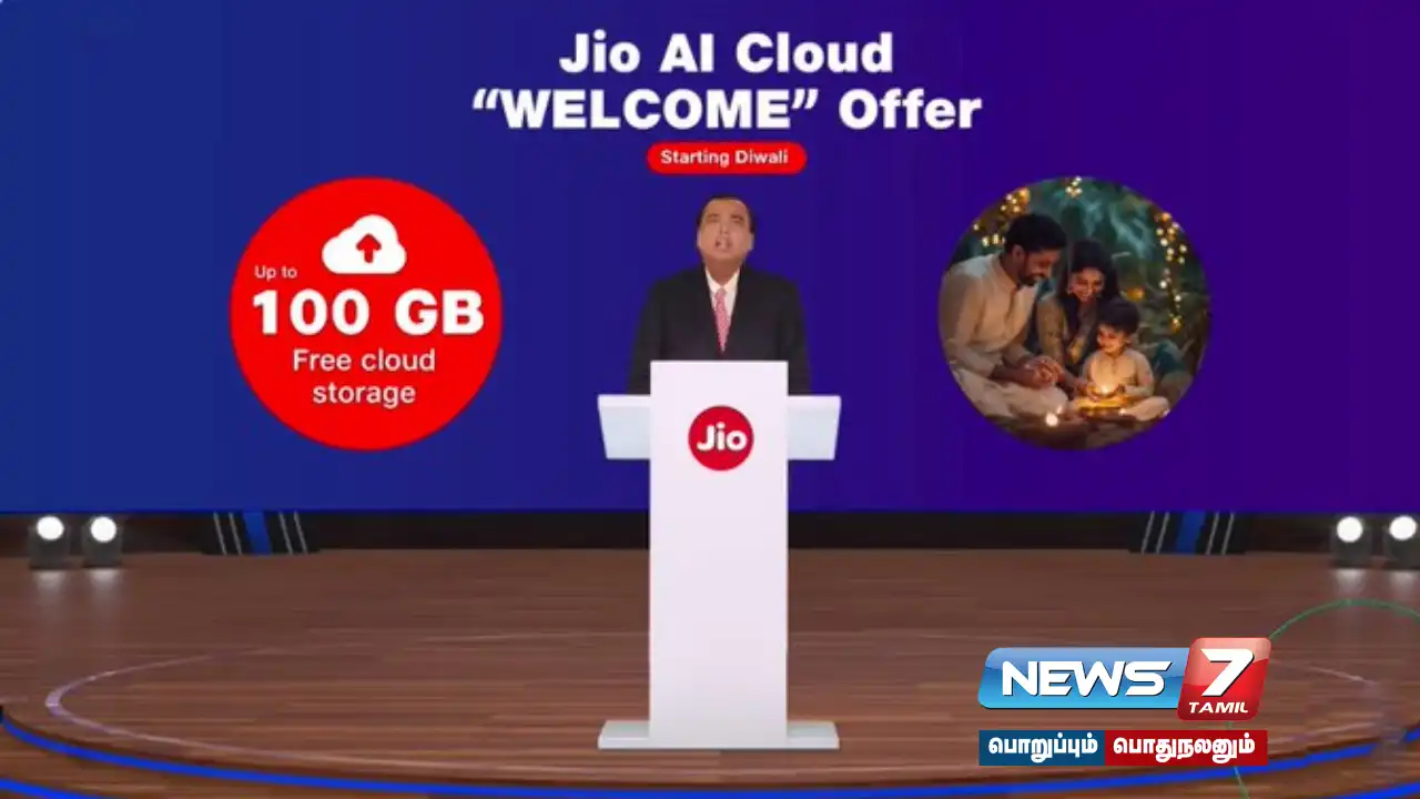 “வரும் தீபாவளியன்று ஜியோ ஏஐ-கிளவுட் அறிமுக சலுகை வெளியிடப்படும். இது கிளவுட் தரவு சேமிப்பு மற்றும் தரவு ஏஜ் சேவைகள். அனைவருக்கும் எல்லா இடங்களிலும் கிடைக்கக்கூடிய வகையிலும், மலிவு விலையிலும் கிடைக்கும். ஜியோ பயனர்கள் தங்கள் புகைப்படங்கள், விடியோக்கள், ஆவணங்கள், மற்ற அனைத்து டிஜிட்டல் பதிவுகள் மற்றும் தரவுகள் ஆகியவற்றைப் பாதுகாப்பாக சேமித்து வைப்பதற்கு 100 ஜிபி வரை இலவச கிளவுட் சேமிப்பகத்தைப் பெறுவார்கள். ஏஐ ஆனது ஆடம்பரமாக இருக்கக்கூடாது என்பதை ஜியோ நிறுவனம் உறுதியாக நம்புகிறது. ஏஐ சேவைகள் விலையுயர்ந்த, உயர்தர சாதனங்கள் மட்டுமின்றி அனைத்து சாதனங்களிலும் பெறக்கூடியதாக இருக்க வேண்டும்.