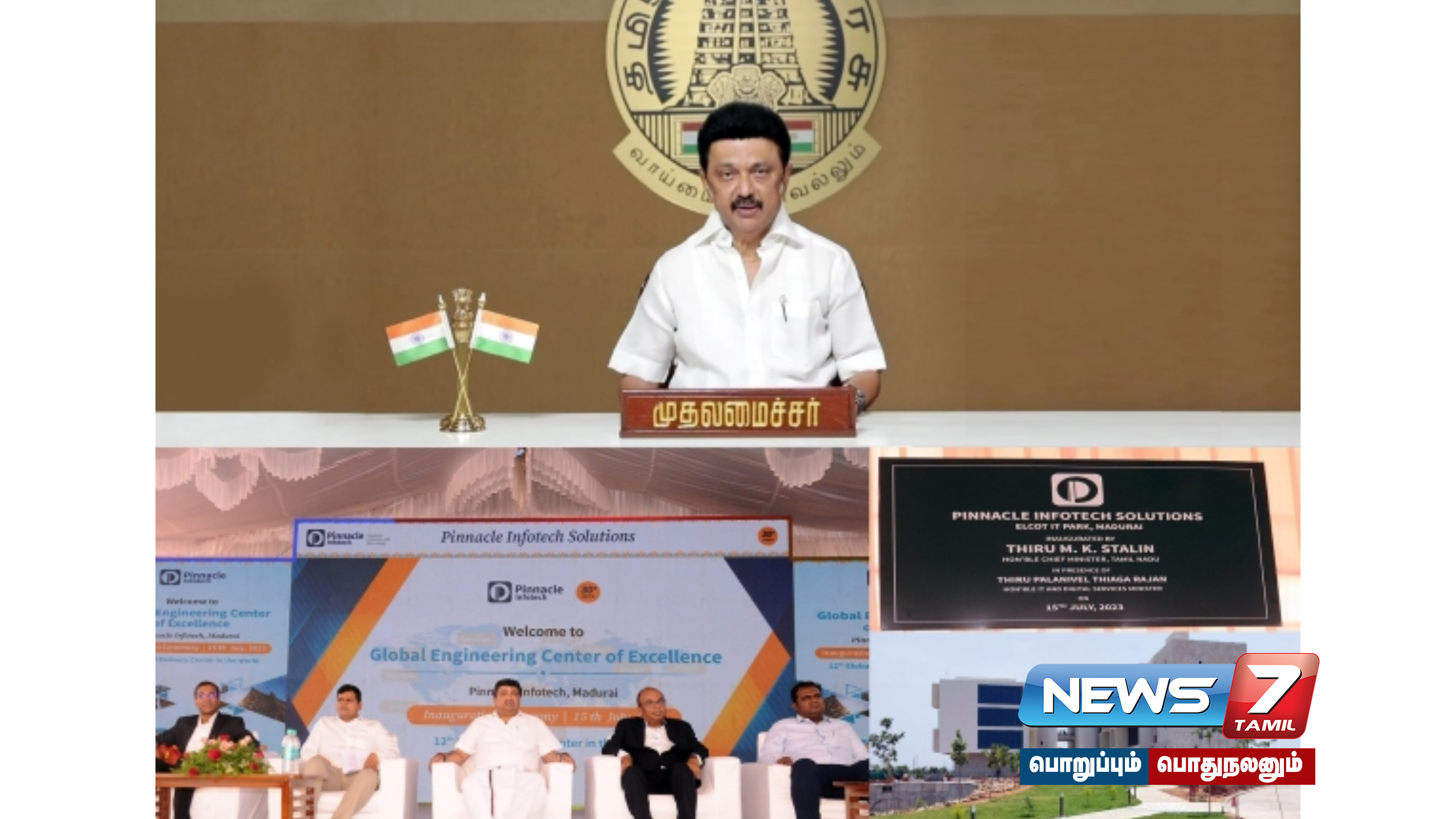 மதுரை வடபழஞ்சியில் அமைக்கப்பட்டுள்ள பின்னக்கிள் இன்போடெக் தகவல் தொழில்நுட்ப நிறுவனத்தின் புதிய கட்டடத்தை முதலமைச்சர் மு.க.ஸ்டாலின், தலைமைச் செயலகத்தில் இருந்து காணொலி வாயிலாக திறந்துவைத்தார்.