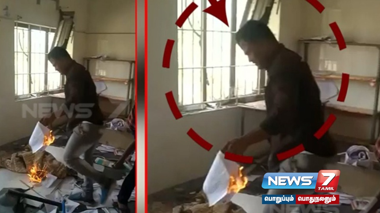 அவர், கள்ளக்குறிச்சி மாவட்டம் சின்னசேலம் தாலுகா வி.மாமந்தூர் கிராமத்தை சேர்ந்த ராமர் என்பவரின் மகன் லட்சாதிபதி (வயது 34) என்பது தெரியவந்தது. சம்பவத்தின்போது பதிவான வீடியோ காட்சியினை வைத்து அவர் தான் மாணவர்களின் சான்றிதழ்களை தீயிட்டு எரித்தது கண்டுபிடிக்கப்பட்டது. பின்னர் அவரை போலீசார் தேடி வந்தநிலையில், தனிப்படையினரால் திருப்பூரில் வைத்து லட்சாதிபதி கைது செய்யப்பட்டார்.