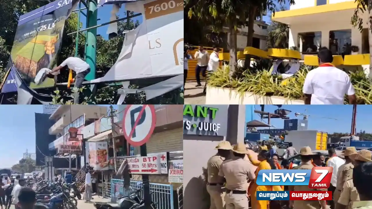 பெங்களூரில் வணிக கடைகளின் பெயர் பலகையில் 60% கன்னட மொழி கட்டாயம் என்ற உத்தரவை உடனடியாக நடைமுறைப்படுத்த வலியுறுத்தி, மாற்று மொழி கடைகளின் பெயர் பலகைகளை சூறையாடியதால் பரபரப்பு ஏற்பட்டுள்ளது.