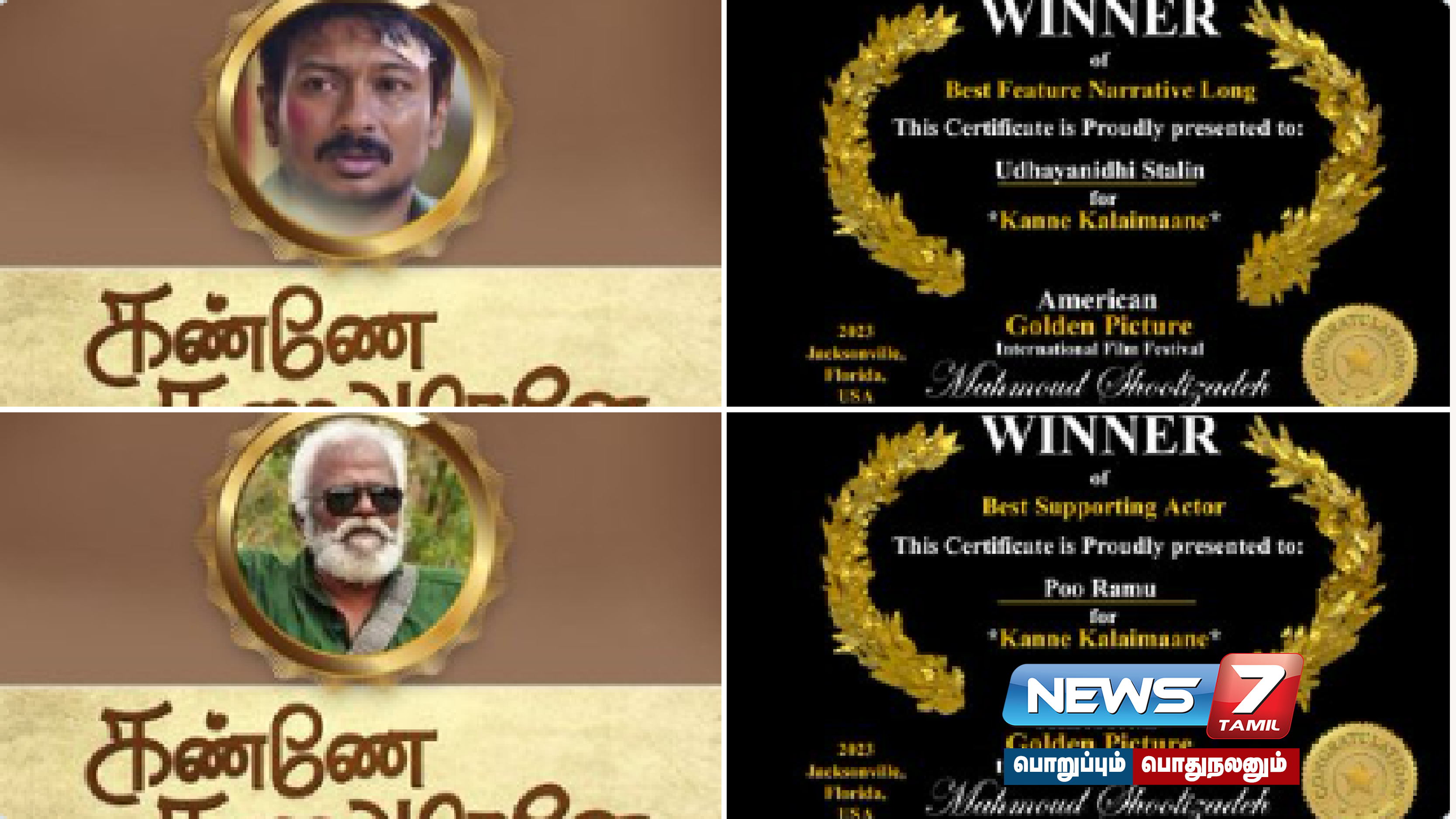 உதயநிதி ஸ்டாலின், தமன்னா நடிப்பில் சீனு ராமசாமி இயக்கத்தில் உருவான ‘கண்ணே கலைமானே’ திரைப்படம் அமெரிக்க திரைப்பட விழாவில் 2 விருதுகளை வென்றது.