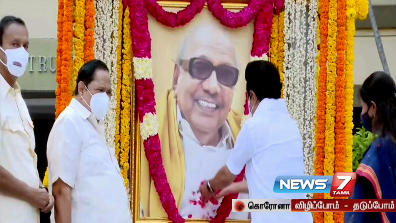 ஆனால், கொரோனா காரணமாகவும், தொற்று அதிகரித்து வருவதாலும் அவரவர் வீடுகள் முன்பு கருணாநிதி படம் வைத்து அஞ்சலி செலுத்துமாறு முதலமைச்சர் வேண்டுகோள் விடுத்திருந்தார்.