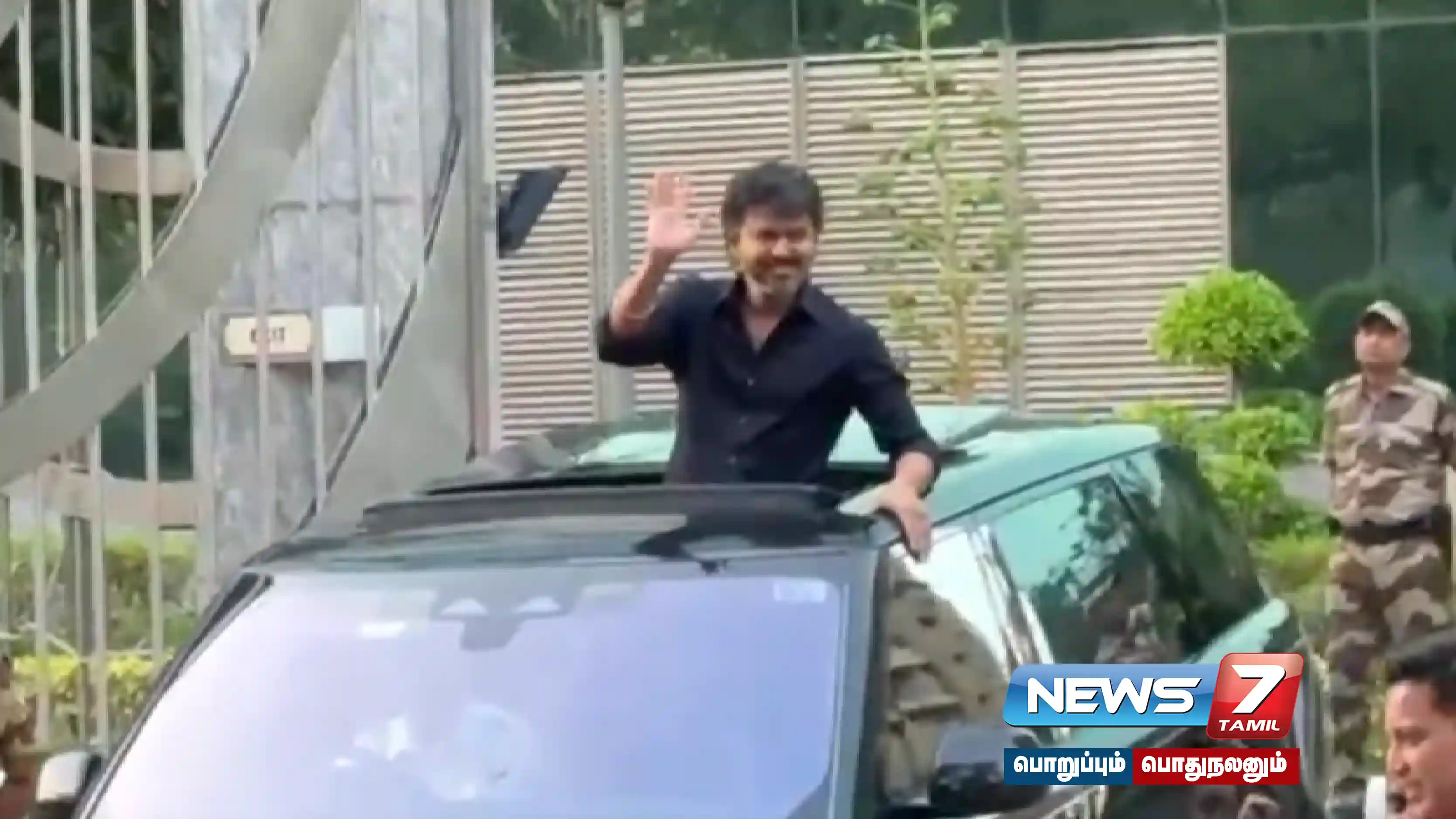 விசாரணை நிறைவுற்றதை தொடர்ந்து சிபிஐ அலுவலகத்தில் இருந்து காரில் நின்ற படி வெளியே வந்த தவெக தலைவர் விஜய் கூடியிருந்த தொண்டர்கள் மற்றும் ரசிகர்களை நோக்கி கையசைத்த படி அங்கிருந்து புறப்பட்டார்.