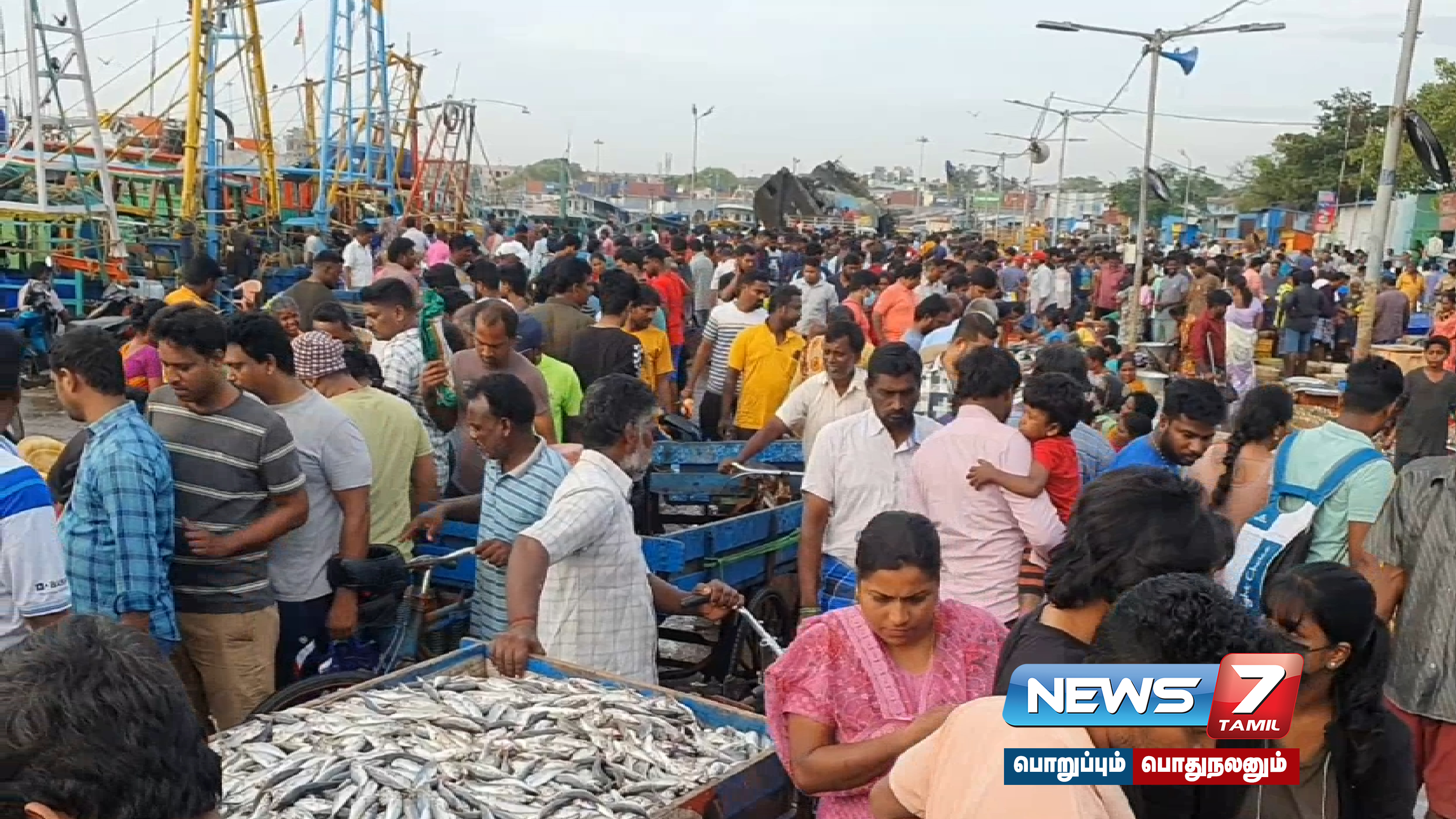 காசிமேடு மீன்பிடி துறைமுகத்தில் அதிகாலை முதலே மீன்களை வாங்க மக்கள் கூட்டம் கூட்டமாக வந்து மீன்களை வாங்கி செல்கின்றனர்.