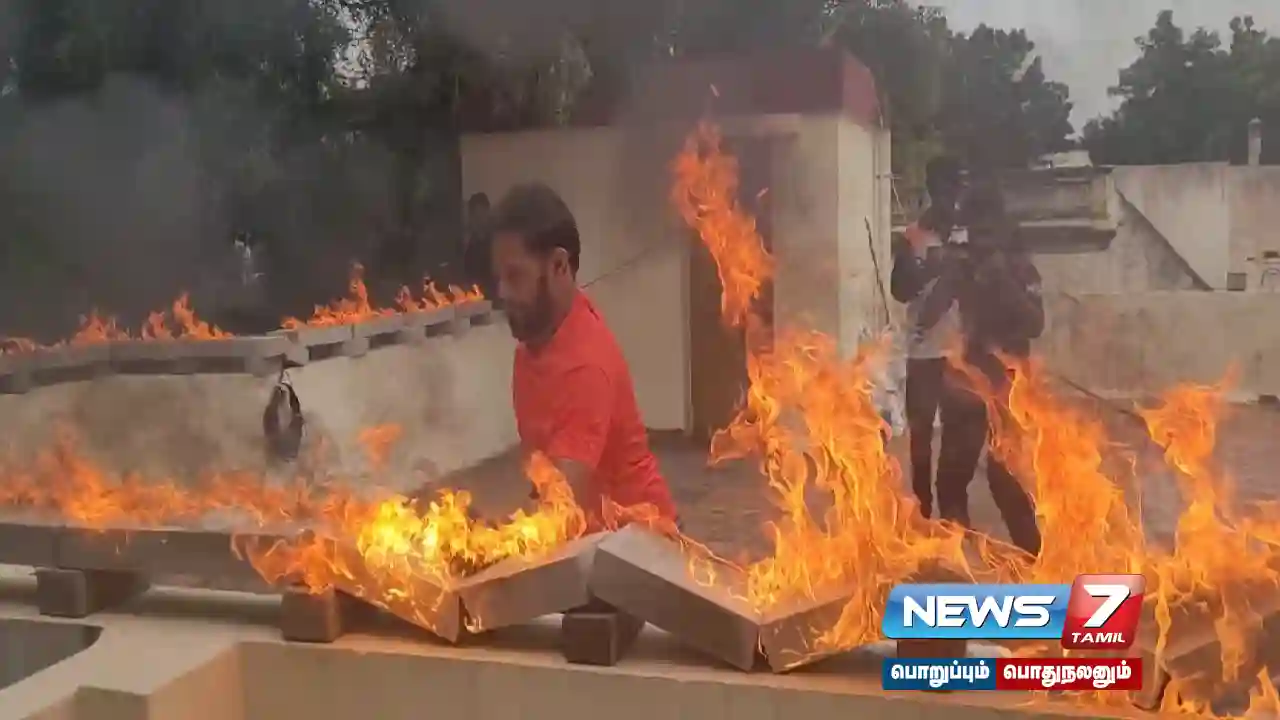 30 வினாடிகளில் 29 நெருப்பு கான்கீரிட் கற்களை கைகளால் உடைத்து, பாகிஸ்தான் வீரரின் உலக சாதனையை முறியடித்துள்ளார் மதுரையை சேர்ந்த விஜய் நாராயணன்.