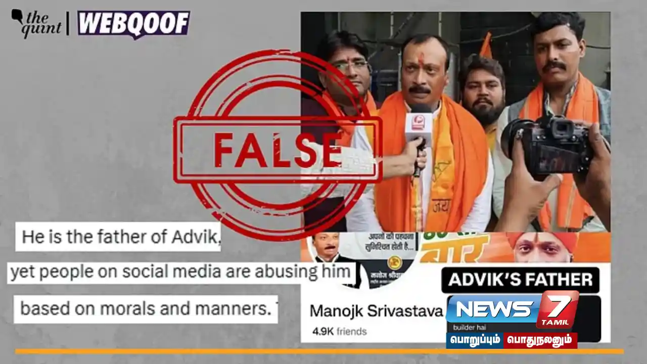 வைரல் படத்தில் காணப்படும் நபர், ஆத்விக் ஸ்ரீவஸ்தவாவின் தந்தை என்று தவறாக அடையாளம் காணப்பட்டிருப்பது தெளிவாகிறது. WebQoof குழுவும் அவரது கருத்துகளுக்காக அவரைத் தொடர்பு கொண்டுள்ளது. ஸ்ரீவஸ்தவாவின் பேஸ்புக் சுயவிவரத்தின்படி, அவர் உத்தரபிரதேசத்தின் லக்னோவில் வசிப்பவர் என்றும் தெரியவந்துள்ளது