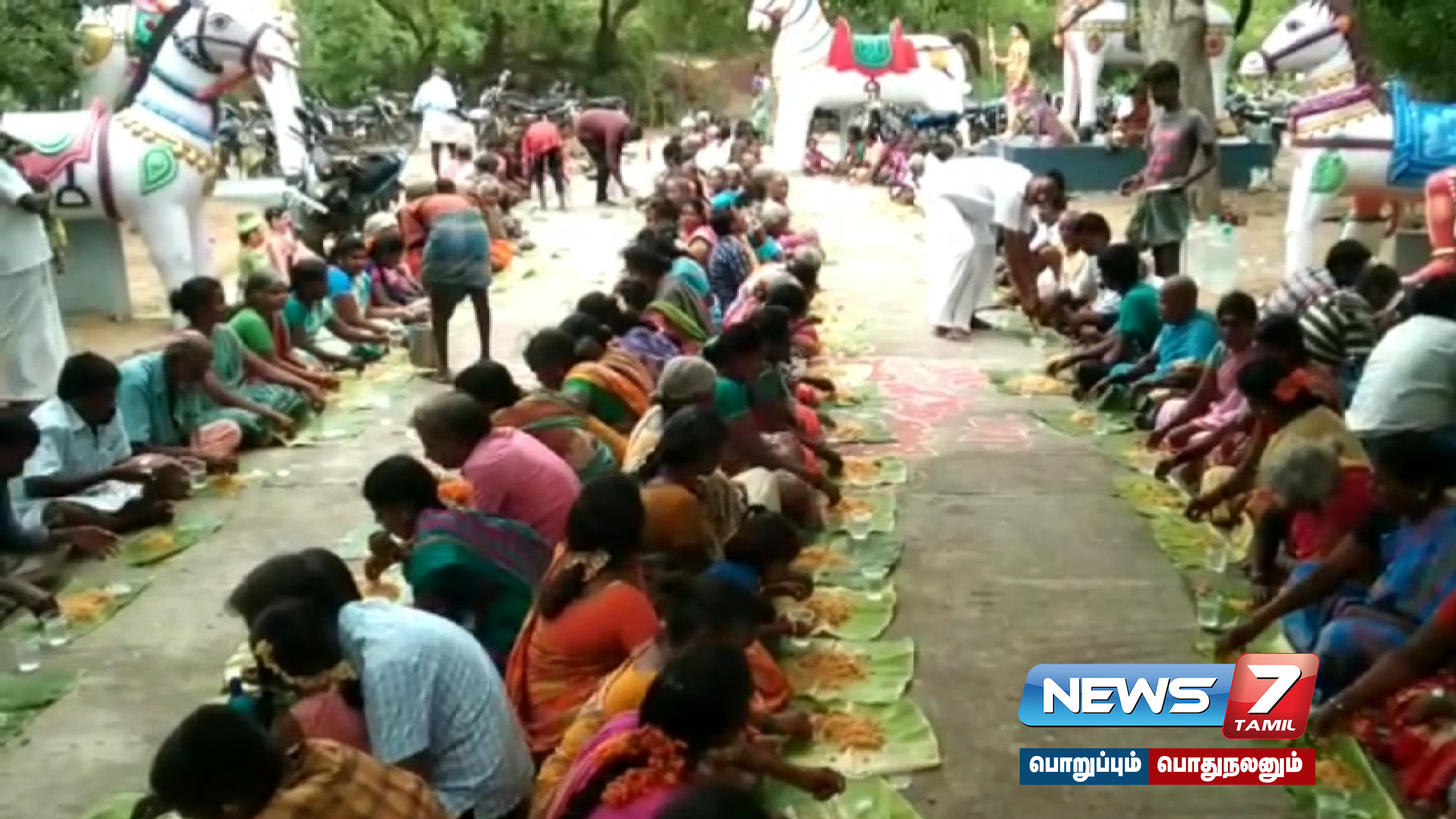 இந்நிலையில் இந்த மகாத்மா காந்தி ஊரக வேலை திட்டத்தில் பணிபுரிபவர்கள் சிறப்பாகப் பணி புரியவேண்டும் பணியின் போது அவர்களுக்கு எந்த அசம்பாவிதங்களும் ஏற்பட கூடாதென்று அப்பகுதியின் ஊராட்சி மன்ற தலைவர் ஞானசேகரன் நேற்று அப்பகுதியில் உள்ள அய்யனாரப்பன் கோவிலில் சிறப்புப் பூஜைகள் செய்து 8 கிடா வெட்டி மகாத்மா காந்தி ஊரக வேலைத் திட்டத்தில் பணிபுரிபவர்களுக்குத் தலைவாழை இலை போட்டு பிரியாணி விருந்து வைத்துள்ளார்.