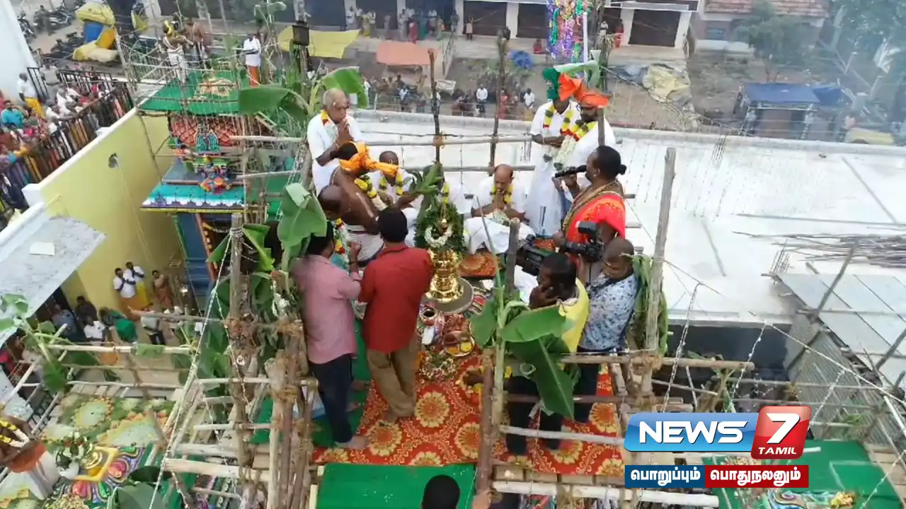 காலசாந்தி உள்ளிட்ட சிறப்பு யாகங்கள் நடத்தப்பட்டது. இதனையடுத்து பட்டாச்சாரியர்கள் வேத மந்திரங்கள் முழங்கி புனித நீர் யாக சாலையிலிருந்து மேளதாளத்துடன் கோவிலைச் சுற்றி வலம் வந்து பின்னர் கோபுர விமான கலசத்தில் ஊற்றப்பட்டது.