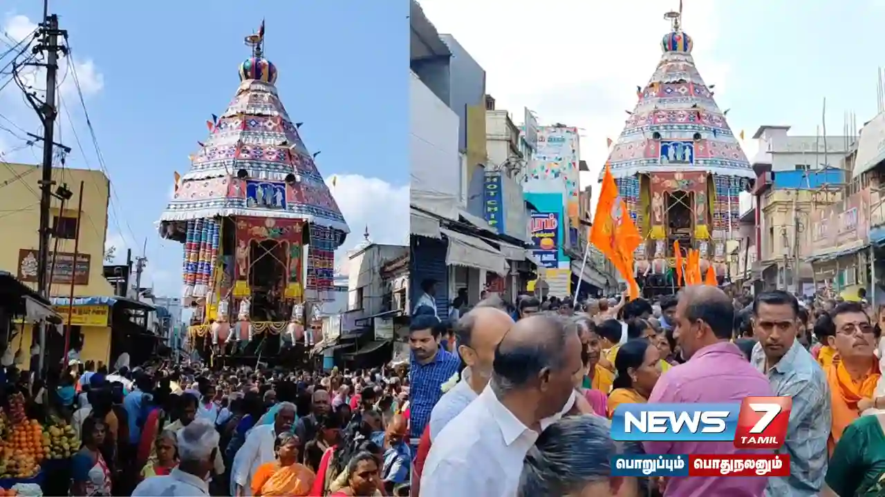 இந்த நிலையில், இவ்விழாவின் முக்கிய நிகழ்வான தேரோட்டம் இன்று காலை நடைபெற்றது. திருத்தேரில் ராமர், லட்சுமணர், சீதை ஆகியோர் எழுந்தருளி பக்தர்களுக்கு காட்டியளித்தனர். இத்தேரோட்டத்தில் ஏராளமான பக்தர்கள் கலந்து கொண்டு, தேரை வடம் பிடித்து இழுத்தனர்.