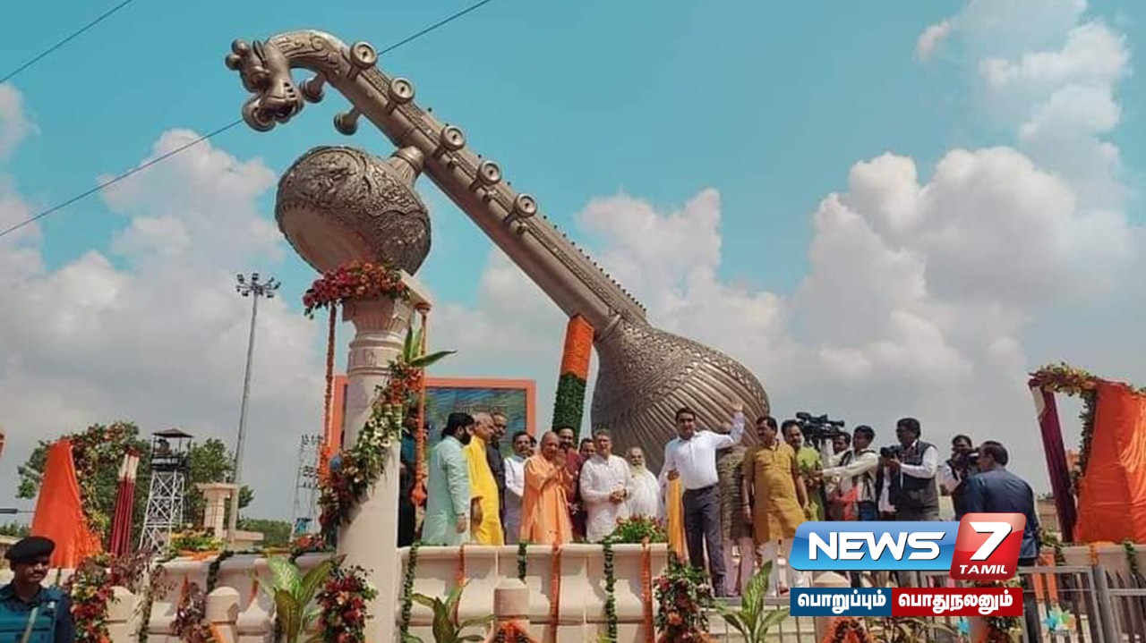 இந்தியாவின் இசைக்குயில் என்றழைக்கப்படும் பிரபல பழம்பெரும் பின்னணி பாடகி லதா மங்கேஷ்கர் கடந்த பிப்ரவரி மாதம் உடல்நலக் குறைவு காரணமாக காலமானார். அவரது 93வது பிறந்த நாளை முன்னிட்டு, அயோத்தியாவில் சரயு நதிக்கரையில் 7.9 கோடி மதிப்பில் வீணையுடன் பிரம்மாண்ட சதுக்கம் நிறுவப்பட்டுள்ளது. இந்த வீணை 40 அடி நீளமும், 14 டன் எடை கொண்டதாகும். இந்த வீணையை பிரதமர் மோடி காணொலி காட்சி வாயிலாக திறந்து வைத்தார். இந்நிகழ்ச்சியில் உத்தரப் பிரதேச முதல்வர் யோகி ஆதித்யநாத், மத்திய சுற்றுலாத்துறை அமைச்சர் கிஷன் ரெட்டி ஆகியோரும் பங்கேற்றனர்.