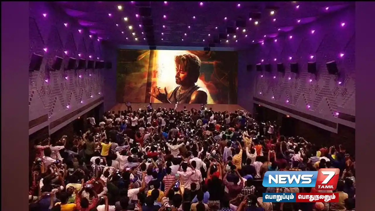 கரூரில் லியோ டிரெய்லர் சிறப்பு காட்சி வெளியிடபட்ட திரையரங்கில் அரங்கம் நிறைந்து இருந்தது. அப்போது ரசிகர்கள் ஆரவாரத்துடன் கொண்டாட்டத்தில் ஈடுபட்டுள்ளனர்.