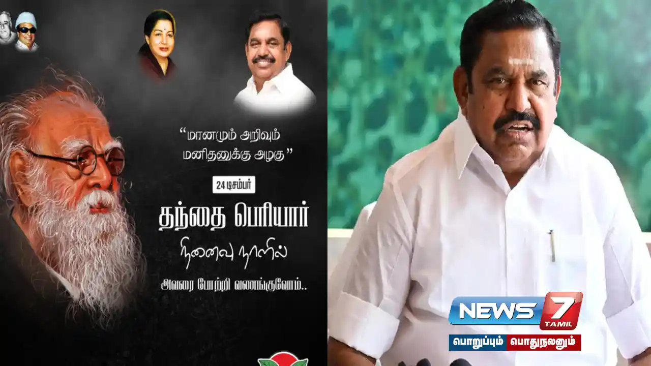 பெரியாரின் 52-வது நினைவுநாள் இன்று அனுசரிக்கப்படுகிறது. இந்த நிலையில் அதிமுக பொதுச்செயலாளர் எடப்பாடி பழனிசாமி எக்ஸ் தளத்தில் பதிவு ஒன்றை வெளியிட்டுள்ளார். அந்த பதிவில், “ஆதிக்கத்தின் அனைத்து வடிவங்களையும் சுட்டெரித்த பேரொளி,