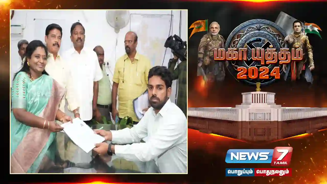 நாடாளுமன்ற தேர்தலில் விருதுநகர் தொகுதியில் பாஜக சார்பில் போட்டியிடும் ராதிகா சரத்குமார் மாவட்ட ஆட்சியர் அலுவலகத்தில் மாவட்ட ஆட்சியரும் மாவட்ட தேர்தல் அலுவலருமான ஜெயசீலனிடம் வேட்பு மனு தாக்கல் செய்தார்.