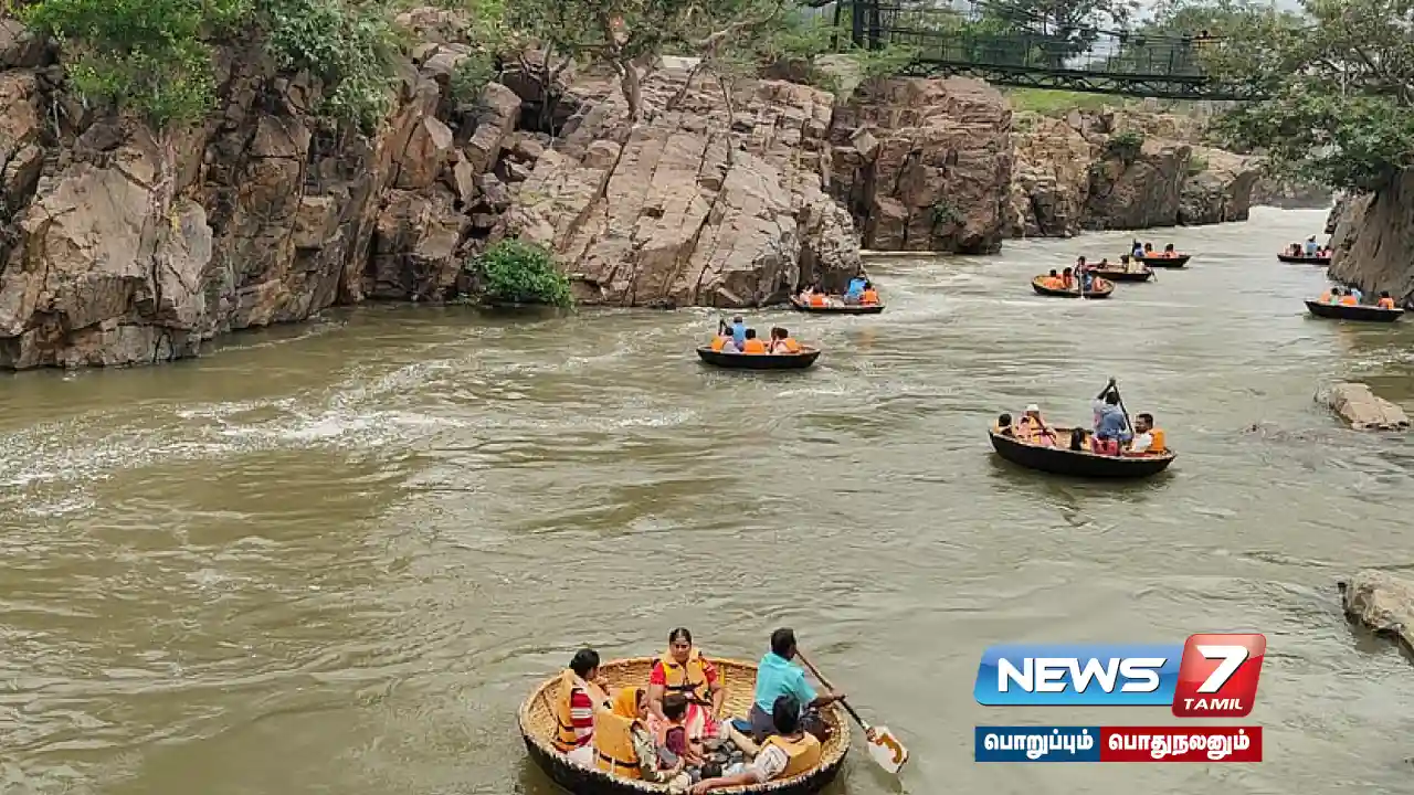 நீர்வரத்து குறைந்துள்ளதால், ஒகேனக்கல் வரும் சுற்றுலாப் பயணிகள் பரிசல் சவாரி செய்து மகிழலாம். மேலும், காவிரி ஆற்றில் பாதுகாப்பாகக் குளிக்கவும் முடியும் என தெரிவித்துள்ளது.