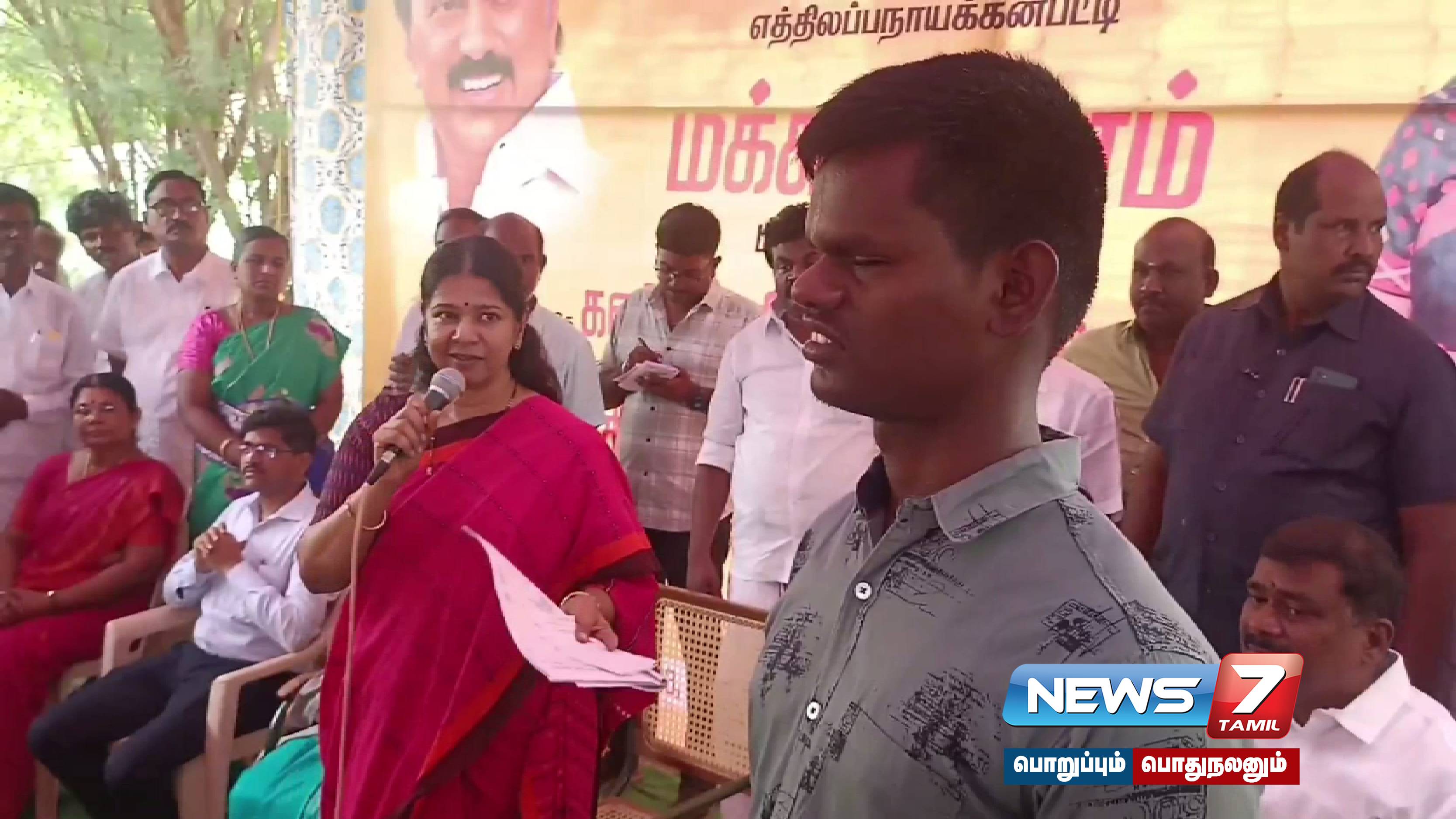 தூத்துக்குடி, கோவில்பட்டி ஊராட்சி ஒன்றியத்திற்குட்பட்ட விளாத்திகுளம் அருகே உள்ள மஞ்சநாயக்கன்பட்டி ஊராட்சி, எத்திலப்ப நாயக்கன்பட்டியில் நடைபெற்ற “மக்கள் களம்” நிகழ்ச்சியில் திமுக துணைப் பொதுச் செயலாளரும், தூத்துக்குடி நாடாளுமன்ற உறுப்பினருமான கனிமொழியை சந்தித்த பார்வையற்றோருக்கான இந்திய கிரிக்கெட் அணிக்கு தேர்வு செய்யப்பட்டுள்ள வீரர் மகாராஜா வாழ்த்துப் பெற்றார்.