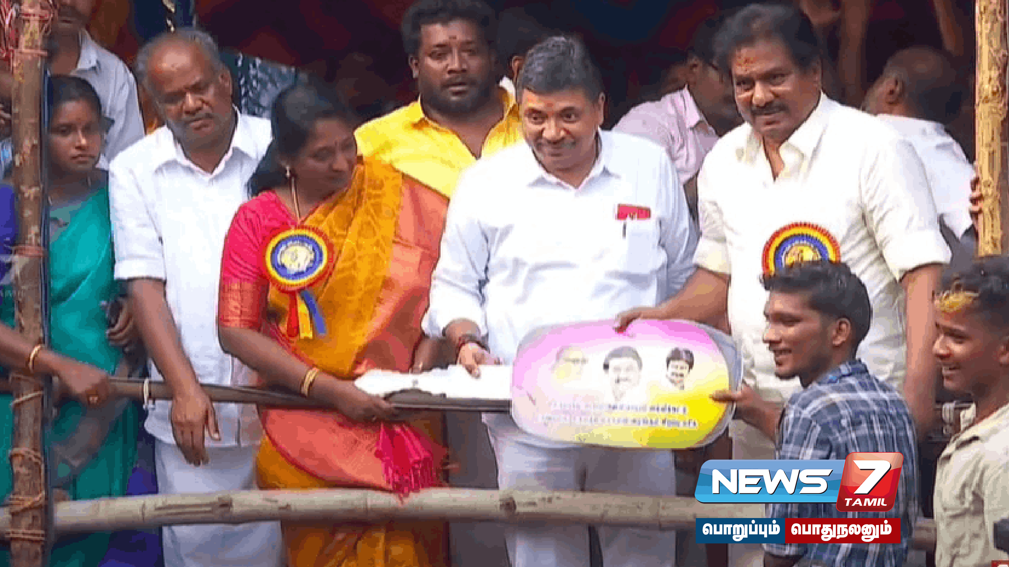 மதுரை அவனியாபுரம் ஜல்லிக்கட்டில் சிறந்த காளைக்கான பரிசை வேலு என்ற காளைக்காக அதன் உரிமையாளர் ஜி.ஆர்.கார்த்தி காரை பெற்றுக்கொண்டார்.
