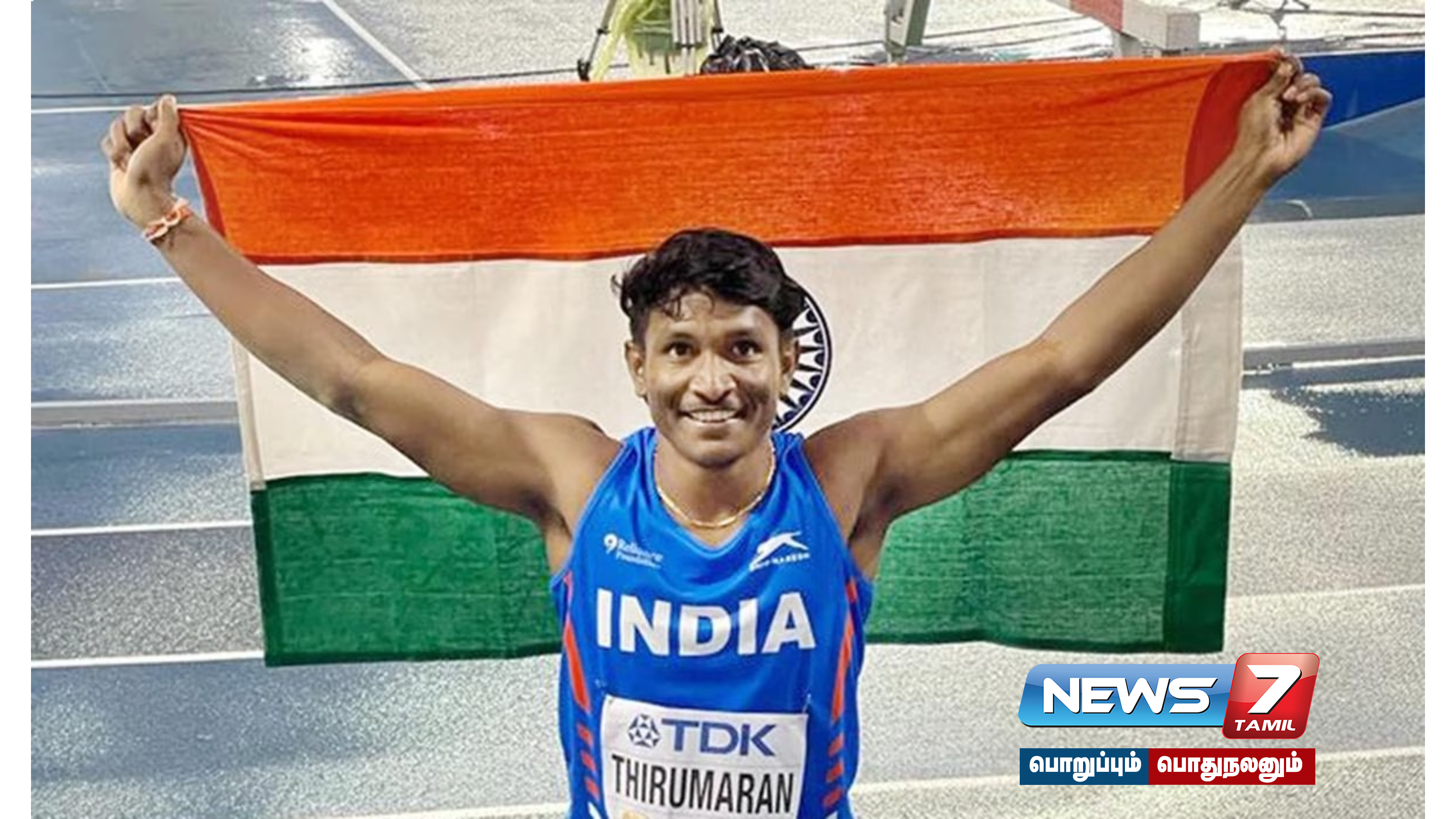 சர்வதேச தடகள போட்டியில் மும்முறை நீளம் தாண்டுதலில் மதுரையை சேர்ந்த விளையாட்டு வீரர் செல்வ பிரபு திருமாறன் சாதனை படைத்துள்ளார்.