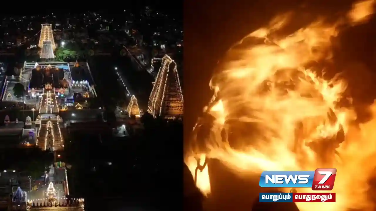 திருவண்ணாமலை அண்ணாமலையார் கோயிலில் காா்த்திகை மகா தீபத் திருவிழாவையொட்டி, இன்று (டிச.3) மாலை 6 மணிக்கு 2,668 அடி உயர மலை மீது விண்ணைப் பிளக்கும் அரோகரா முழக்கங்களுடன் மகா தீபம் ஏற்றப்பட்டது. நாட்டின் பல்வேறு பகுதிகளில் இருந்து வந்திருந்த லட்ச கணக்கான பக்தர்கள் மகா தீபத்தை தரிசித்தனர்.